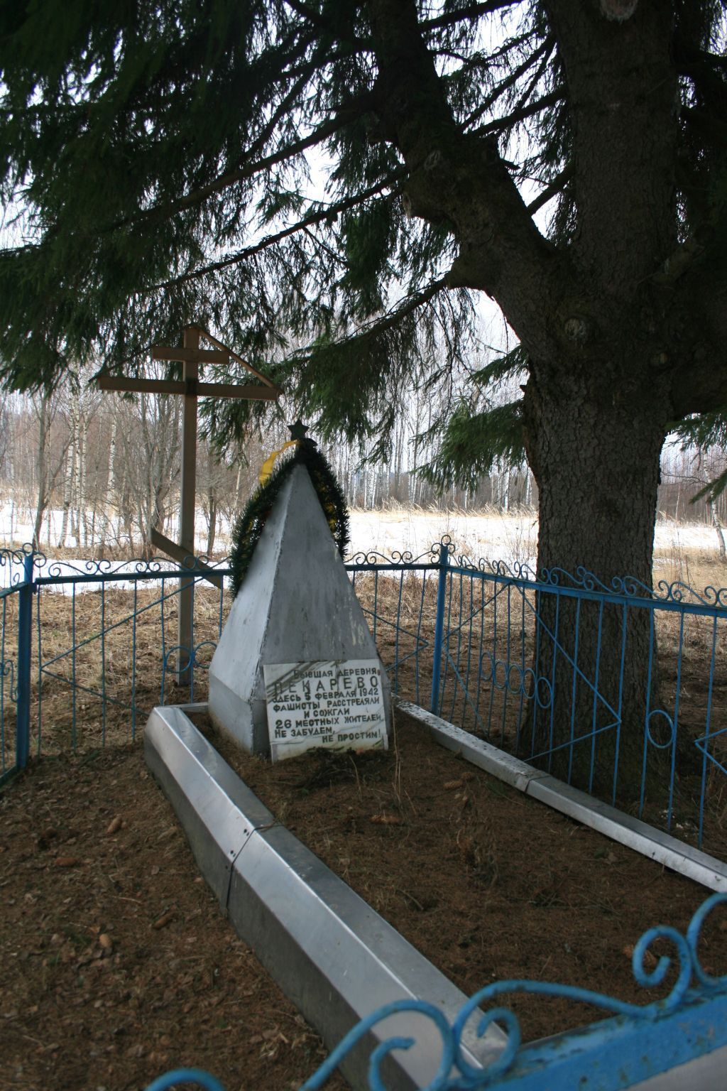 Памятное место, где 5 февраля 1942 г. гитлеровцами были сожжены 21 мирный житель деревни