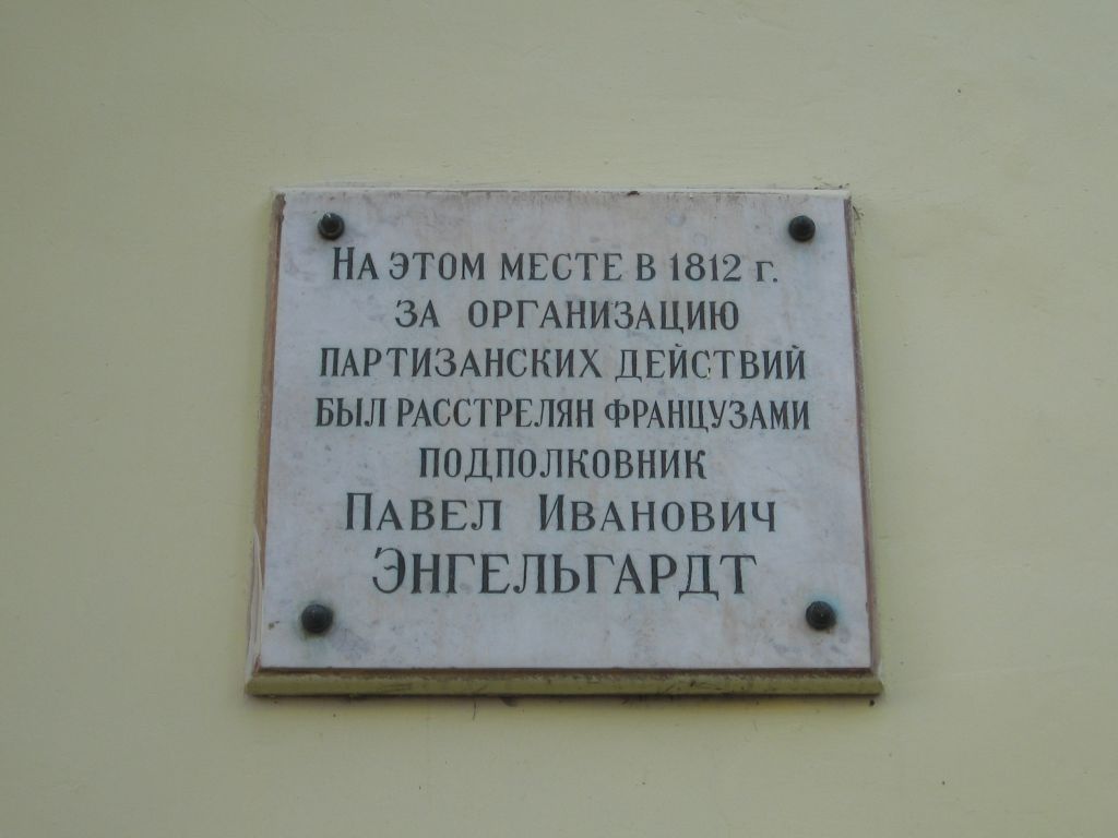 Памятное место, где в 1812 г. французы расстреляли подполковника П.И.Энгельгардта за организацию партизанского движения