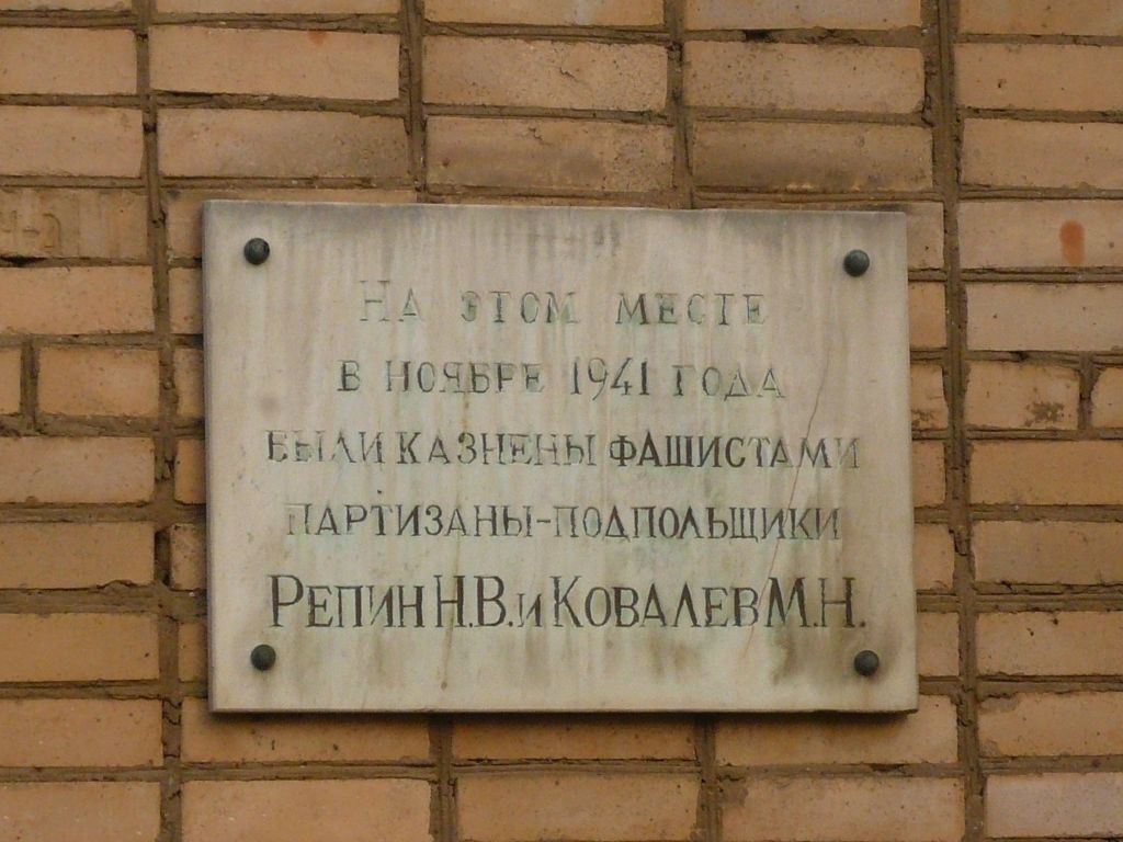 Место казни гитлеровцами партизан-подпольщиков Репина Николая Васильевича и Ковалева Михаила Васильевича в ноябре 1941 г.. Установлена мемориальная доска