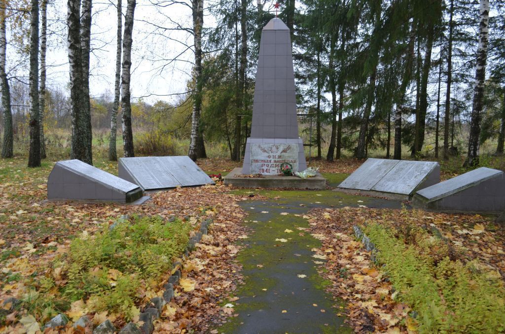 Памятное место, где в начале 1942 г. был сформирован партизанский отряд. За связь с партизанами 63 жителя деревни 13 апреля 1942 г. были сожжены гитлеровцами