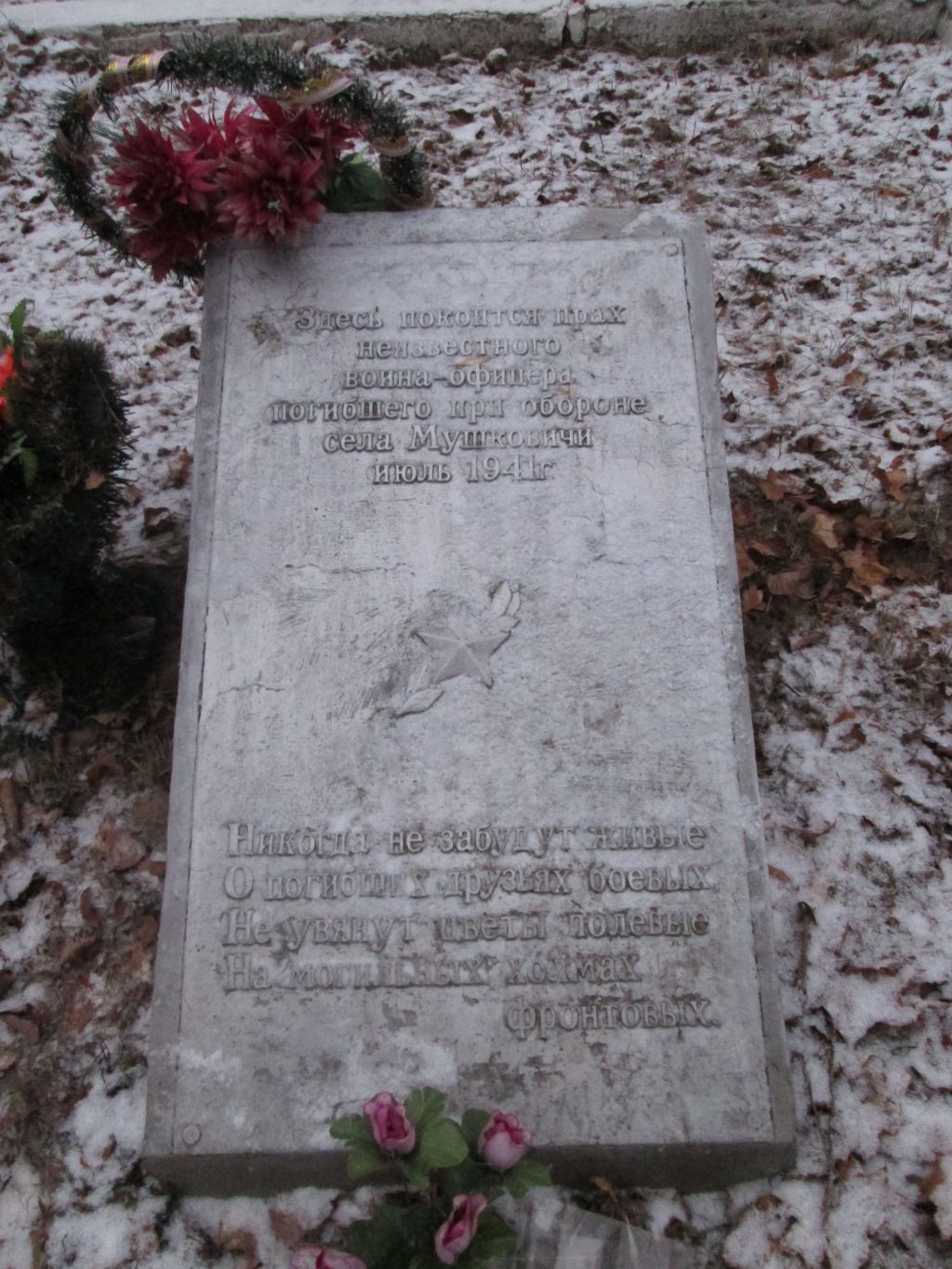 Могила неизвестного советского командира, погибшего в бою с немецко-фашистскими захватчиками в июле 1941 г. Установлена надгробная плита