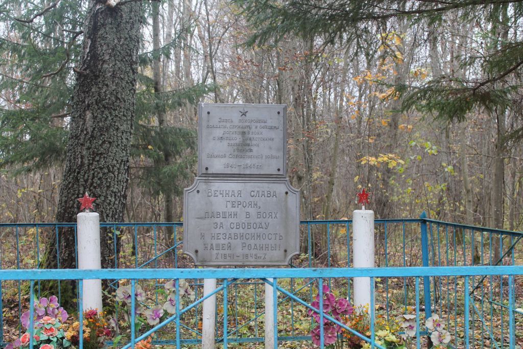 Памятное место, где в 1942 г. располагался штаб партизанского соединения «Батя». Здесь же работала выездная редакция газеты «Комсомольская правда