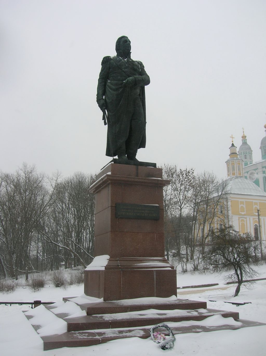 Предметом охраны объекта культурного наследия (памятника истории и культуры) народов Российской Федерации федерального значения «Памятник М.И. Кутузову», 1954 г., расположенного по адресу: Смоленская область, город Смоленск, улица Большая Советская, у подножья Соборной горы (далее также – Объект культурного наследия) являются:I. Историко-культурная ценность:- Объект культурного наследия является одним из старейших городских монументальных скульптур, стоящих в открытом пространстве, выполняющий роль одного из главных центров притяжения городской жизни, определяющий художественную выразительность города и подчеркивающий его культурную и историческую уникальность;- Объект культурного наследия является одним из лучших памятников М.И. Кутузову в Российской Федерации.II. Художественная ценность:- Объект культурного наследия является выдающимся образцом советского монументального искусства и отечественной академической школы советского реализма 1930-1950 гг.III. Градостроительные характеристики:- Объект культурного наследия играет важную градостроительную роль в структуре города Смоленска, так как Объект культурного наследия формирует хорошо узнаваемый архитектурно-художественный образ центральной части города Смоленска, придавая ему уникальный характер;- Объект культурного наследия является важной пространственной и художественной доминантой, определяющей характер городской ткани исторического центра города Смоленска.IV. Объемно-пространственная композиция:- Объект культурного наследия представляет собой ростовую бронзовую фигуру в две натуральные величины на высоком прямоугольном постаменте с профилированным карнизом и цоколем на трехступенчатом стилобате, окруженном низкой узорчатой оградой с чугунными пряслами между гранитными столбами;- композиция Объекта культурного наследия: трехчастная вертикальная пирамидальная, фигура полководца статичная, уравновешенная, с выраженным контрапостом;- существующие пространственные характеристики Объекта культурного наследия;- высотные характеристики Объекта культурного наследия.V. Композиция и архитектурно-художественное оформление элементов Объекта культурного наследия:1) лицевая (западная) сторона:- фигура М.И. Кутузова;- постамент с профилированным карнизом и цоколем на трехступенчатом стилобате;- месторасположение, габариты, а также текст мемориальной доски: «Великому русскому полководцу Михаилу Илларионовичу Кутузову-Смоленскому»;- ограда с чугунными пряслами между гранитными столбами;2) левая (северная) сторона:- фигура М.И. Кутузова;- постамент с профилированным карнизом и цоколем на трехступенчатом стилобате;- ограда с чугунными пряслами между гранитными столбами;3) правая (южная) сторона:- фигура М.И. Кутузова;- постамент с профилированным карнизом и цоколем на трехступенчатом стилобате;- ограда с чугунными пряслами между гранитными столбами;4) тыльная (восточная) сторона:- фигура М.И. Кутузова;- постамент с профилированным карнизом и цоколем на трехступенчатом стилобате;- ограда с чугунными пряслами между гранитными столбами.VI. Фундаменты, внутренние несущие конструкции Объекта культурного наследия.VIII. Материал и цветовое решение отделки лицевых поверхностей Объекта культурного наследия:- фигура М.И. Кутузова – натуральная темная бронза;- облицо