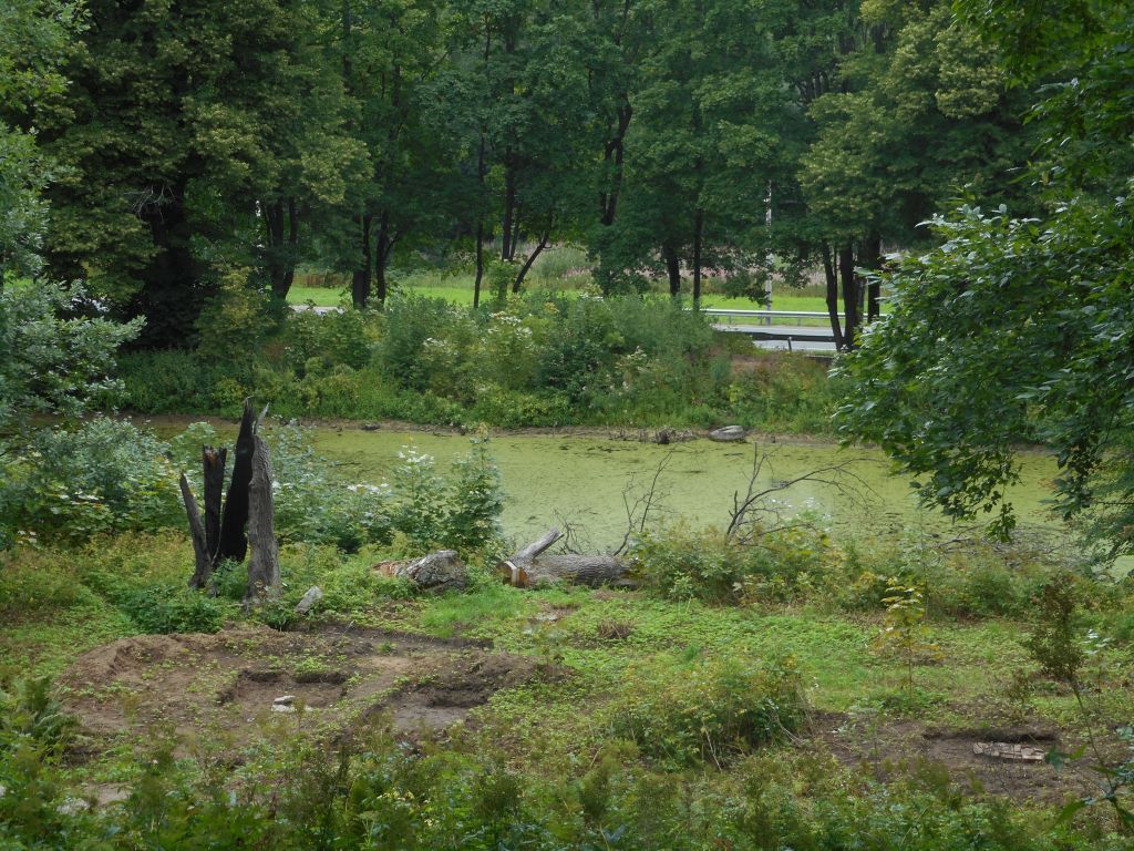 Объемно-пространственное решение:исторические местоположение (в саду нижней террасы), габариты и конфигурация пруда в плане.Конструктивная система: исторические конфигурация и профиль откосов берегов пруда, их материал (одернованные);историческое местоположение, габариты и конструктивное решение водосброса;исторические конструкции моста, расположенного с южной стороны пруда у впадения в него ручья.Архитектурно-художественное решение:историческое архитектурное решение моста в соответствии с архивными проектными и фиксационными материалами – арочный однопролетный мост, облицованный гранитом.