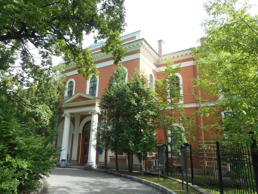 Объемно-пространственное решение:двухэтажное здание лицевого корпуса Ш-образное в плане с цокольным этажом, с ризалитом по центру лицевого (западного) фасада, двумя ризалитами на заднем (восточном) фасаде:объем церкви, примыкающей к лицевому корпусу по центру заднего (восточного) фасада;одноэтажная пристройка в северной части заднего (восточного) фасада лицевого корпуса с тремя ризалитами и мезонином с повышением в виде лучковых арок над оконными проемами;дымовые трубы - габариты,местоположение, конфигурация;крыши - конфигурация (скатные со слуховыми окнами), габариты; высотные отметки, материал окрытия (металл).Конструктивная система здания:наружные и внутренние кирпичные капитальные стены;распашная трехмаршевая парадная лестница с конструкциями на сводах, известняковыми ступенями с профилем по краю. металлическим литым ограждением в виде вертикальных стоек с перехватами и растительным орнаментом, с пальметтами в верхней части, деревянным профилированным поручнем (габариты, местоположение, конструкции, материалы, рисунок ограждения);пандус, ведущий в цокольный этаж, с деревянным ограждением в виде балюстрады из фигурных балясин и деревянным профилированным поручнем (габариты, местоположение у парадной лестницы. конструкции, материалы, рисунок ограждения);две лестницы на сводах сизвестняковыми ступенями с профилем по краю, с металлическим кованым ограждением простого рисунка, с деревянными профилированнымпоручнем (габариты, местоположение, конструкции, материалы, рисунок ограждения);парусные своды в помещении парадной лестницы,парусный, крестовые своды в помещении бывшей церкви.крестовые, крестовые с распалубками, парусные, коробовые в помещениях цокольного, первого и второго этажей:исторические отметки перекрытий.Объемно-планировочноерешение:историческое объемно-планировочное решение в габаритах капитальных стен.Архитектурно-художественное решение фасадов:архитектурно-художественное решение в приемах эклектики;фасады лицевого корпуса:материал и характер отделки фасадов – гладкая штукатурка, руст в уровне цокольного этажа;материал и характер отделки цоколя – известняк;исторические дверные и оконные проемы – местоположение, конфигурация (прямоугольные, с полуциркульным завершением);исторический рисунок, цвет (коричневый) и материал (дерево) дверных и оконных заполнений;оформление ризалита центрального входа – портик с двумя колоннами ионического ордера, двумя пилястрами, ступенчатым архитравом, гладким фризом и профилированным карнизом с дентикулами;треугольный фронтон в завершении портика с профилированным карнизом по краю;пилястры по краям ризалита;оформление дверного проема по центру портика – профилированный архивольт на импостах;деревянное дверное заполнение проема по центру портика двустворчатое с полуциркульной фрамугой с веерной расстекловкой, филенчатое, с остеклением в центральной и верхней частях, с профилированными рамами, поясами дентикул и вставками в нижних филенках с алмазной гранью, латунные накладки в нижней части дверного заполнения, историческая фурнитура (ручки скобы – дерево, латунь);оформление оконных проемов ризалита в уровне первого этажа – профилированные наличники, профилированные архивольты на импостах, филенки в подоконном пространстве;оформлен