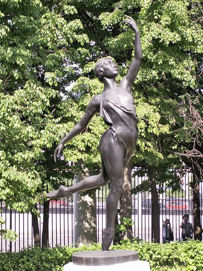 Объемно-пространственное и пластическое решение:габариты и конфигурация круглой скульптуры, изображающей балерину Галину Уланову в полный рост в танце, на пуантах, с опорой на правую ногу, с поднятой левой рукой и отведенной назад правой; балерина одета в легкую тунику; скульптура установлена на низком круглом гладком плинте;скульптор: Елена Янсон Манизер;время: 1936 г.;материал, техника исполнения: бронза, литье;на плинте надпись: «Скульптор Елена Янсон Манизер. Отлито заводом КНАПа. Ленинград 1936г.».