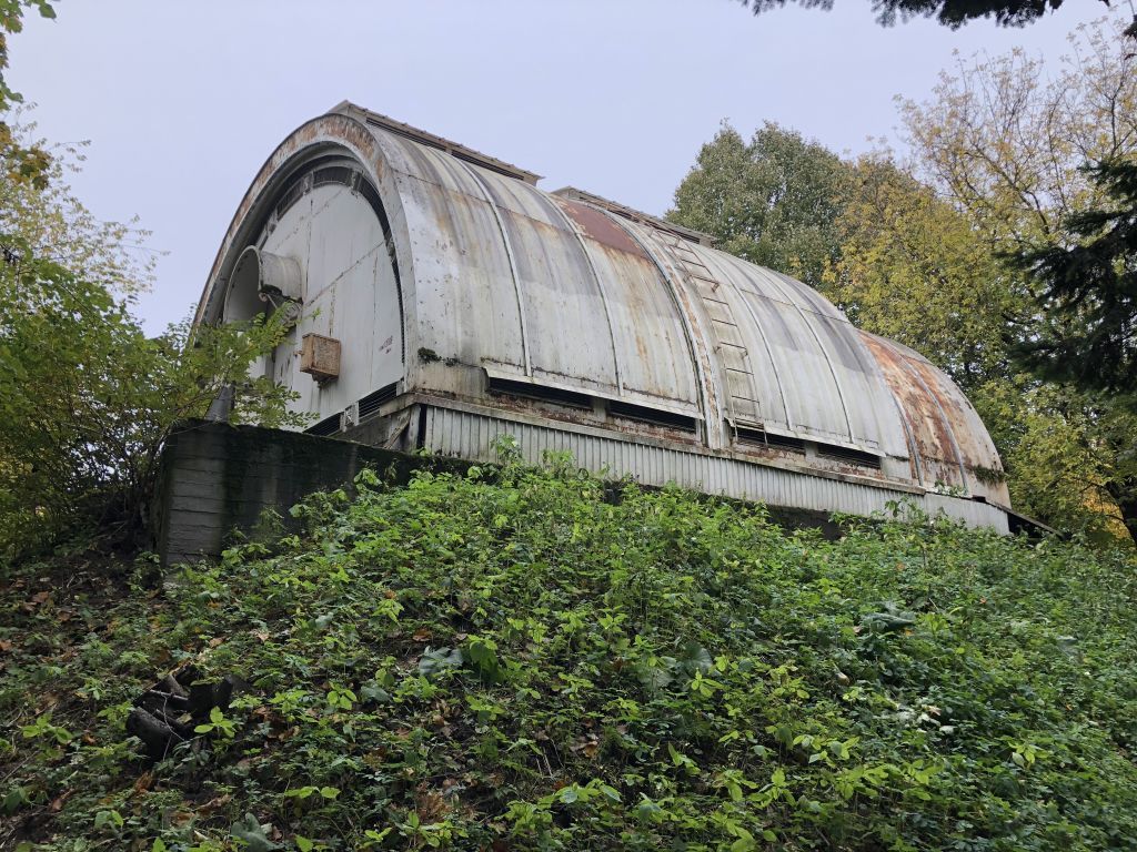 Объемно-пространственное решение:павильон на насыпном холме прямоугольный в плане полусферической формы с раздвижной металлической конструкцией; габариты, конфигурация, высотные отметки павильона.Конструктивная система здания:фундаменты, искусственный насыпной холм;исторические металлические конструкции (раздвижные на железобетонных основаниях с рельсами).Объемно-планировочное решение:историческое объемно-планировочное решение в габаритах стен павильона.Архитектурно-художественное решение фасадов:металлический каркас с обшивкой металлическими пластинами;дверной проем - габариты, конфигурация (прямоугольный), местоположение;металлический козырек над дверным проемом полусферической формы на волютообразных кронштейнах;прямоугольные вставки со звездами между вентиляционными решетками;профилировки под скатами павильона;входная лестница на два схода с металлическим ограждением простого рисунка в виде перекрещивающихся перекладин в розеткой на средокрестии, бетонные ступени и площадка с металлической решеткой в центре; ее конструкции, габариты, местоположение;бетонные лестницы на насыпном холме с глухими парапетами и металлическим ограждением.