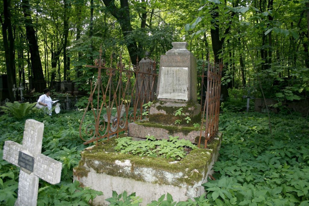 местоположение, габариты и конфигурация участка;захоронения в границах территории участка;художественное решение надгробия (крест /утрачен/ на пьедестале на высоком поребрике), вид материала (естественный камень), ограждение (частично утрачено) – вид материала (металл), характер и содержание надгробной надписи.