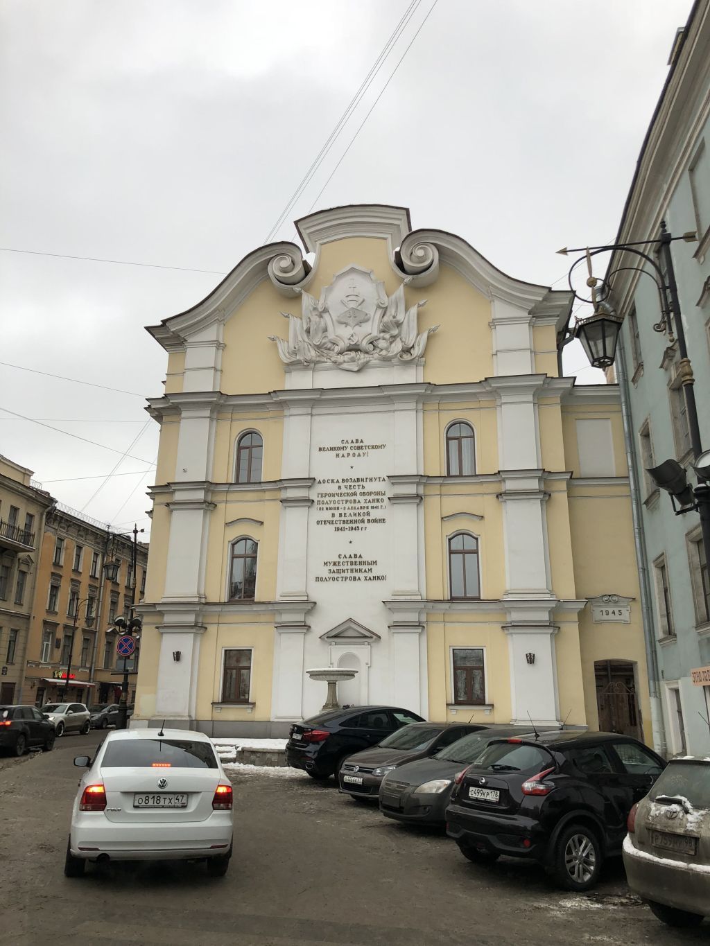 Объемно-пространственноерешение: габариты, местоположение иконфигурация стены* и фонтана;высотная отметка;*стена является торцевой стенойобъекта культурного наследияфедерального значения «Дом, где жиликомпозиторы: в 1871-1872 гг. -Мусоргский М.П., в 1871-1872 гг. -Римский-Корсаков Н.А., в 1865 г. -Чайковский П.И.». Мемориал,посвященный защитникам полуостроваХанко, выполнен в 1945 г. по проектуархитекторов В.А. Каменского и А.А.Лейман. архитектурно-художественное решениефасада выполненное в характересоветской архитектуры 40-х годов сэлементами необарокко; фасадсимметричный, разделенныйпилястрами на три части ивыполненный в виде мемориальнойдоски;материал отделки фасада – окрашеннаяштукатурка; цоколь - известняк;исторические оконные проемы –местоположение, конфигурация,оформление, габариты;заполнения оконных проемов –исторический рисунок, единообразиецветового решения;- в уровне первого этажаполуциркульная ниша впрофилированных наличниках сушками, над ней треугольный сандрик;- в уровне 2-3 этажей мемориальнаянадпись, выполненная накладнымибуквами «Слава Великому Советскомународу! Доска воздвигнута в честьгероической обороны полуостроваХанко (22 июня - 2 декабря 1941 г.) вВеликой Отечественной войне 1941-1945 г.г. Слава героическим защитникамполуострова Ханко!»;- в уровне щипца барельеф в виде гербана фоне знамен;лепной декор фасада: профилированныетяги, профилированные наличники,сандрики над окнами второго этажа,пилястры, профилированныйвенчающий карниз;щипцовое завершение в виде волют иповышенной центральной части;стереобат с двумя лестницами на триступени, облицованный известняковымиплитами;фонтан: круглая мраморная чаша нацилиндрическом основании,выполненном в виде стилизованныхканнелированных пилястр, завершенныхльвиными лапами; ступенчатыйпьедестал прямоугольного сечения;