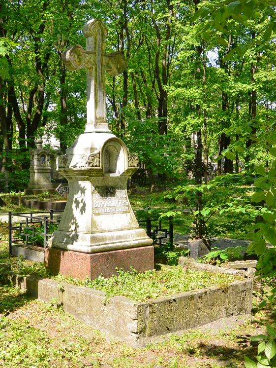 Объемно-пространственное и архитектурно-художественное решение:историческое местоположение захоронения, габариты и конфигурация надгробия; историческое надгробие в виде мраморного трилистного креста на прямоугольном в плане фигурном профилированном пьедестале из мрамора и прямоугольном в плане основании из красного гранита на подиуме ограниченном поребриком из известняка, мраморная композиция декорирована рельефами символического, растительного и шрифтового характера; рельефные символы, характер и содержание надгробных надписей.