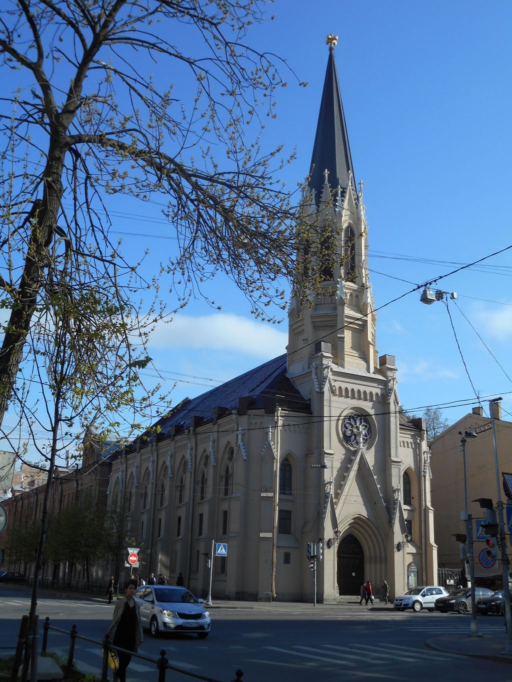 Объемно-пространственное решение: Габариты и конфигурация в плане здания базиликального типа с башней-колокольней, размещенной над северной частью здания, и одноэтажной часовней, примыкающей к основному объему церкви со стороны двора;Габариты внутреннего двора, ограниченного с севера – оградой, с востока – фасадом здания церкви, сюга – фасадом часовни, , с запада - брандмауэром соседнего здания по Среднему проспекту, д. 18, литера А; конфигурация, габариты и высотные отметки двускатной крыши основного объема; конфигурация, габариты и высотные отметки шпиля колокольни, венчание шпиля декоративным металлическим крестоцветом; первоначальные конфигурация, габариты и высотные отметки крыши часовни*•Искажены в результатае перестрорек XX века;Конструктивная система: наружные и внутренние исторические (XIX века) капитальные стены,сохранившиесяисторические кирпичные своды;лестница в башне – объемно- пространственная композиция (винтовая), исторические габариты, конструктивное решение (на сводах), известняковые ступени (материал – известняк, профиль);историческоеконструктивное решение стропильной системы крыши (система деревянных ферм с подкосами)Объемно- планировочное решение: В габаритах исторических (XIX века) капитальных стен Архитектурно- художественное решение фасадов: первоначальноеархитектурно- художественное решение фасадов, выполненноевхарактере архитектуры историзма (стилизация готической архитектуры):фасады основного объема здания расчлененыповертикали контрфорсами со стрельчатыми завершениями, декорированными чугунными краббами, укреплёнными на массивных чугунных пластинах и увенчанными медными выколотными крестоцветами;материал и характер отделки фасада – окрашенная штукатурка;венчающий штукатурный карниз с машикулями;первоначальные профили тяг, карнизов, полуколонн и наличников;материал цоколя – известняковая скоба;габариты и конфигурация оконных проемов основного объема (по первому и второму этажам – прямоугольные, в третьем этаже –стрельчатые и, над ними, круглые) и башни-колокольни; исторический рисунок, материал (дерево) и цвет заполнений оконных проемов;круглое окно-роза над главным входом(северныйфасад), историческийрисунокего заполнения;перспективный портал главного входа, его исторический профиль и орнамент лепных капителей;исторический рисунок (готического характера) и материал (дерево) заполнения проема портала главного входа;парапет крыши основного объема здания: пинакли пирамидальной формы по осям контрфорсов фасада, декорированные краббами. (по 5 на каждом ребре) и увенчанные фиалами в виде крестоцветов; между пинаклей парапетное ограждение чугунного литья с орнаментом в виде крестоцветов – исторические габариты, внешний облик, материал (металл) **в настоящее время пинакли и ограждение демонтированы оформление фасада башни- колокольниметаллическими пинаклямиистрельчатыми завершениями, аналогичными фасаду основного объема здания;историческое оформление фасада часовни** искажено в результате перестроек ХХ векаоградасостороныСреднего проспекта:историческиегабариты, отметки, конфигурация и материал (известняк) цокольной части, историческиегабариты,рисунок (вертикальные прутья с завершением в виде стрельчатых арочек), материал (чугун) и техника исполнения (лить