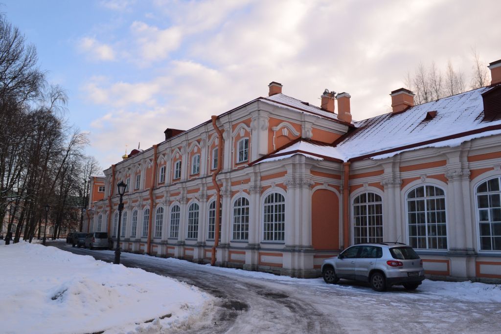 Объемно-пространственное решение:Здание 1-2-этажное на полуподвале, сложное в плане, асимметричное, вытянутое с запада на восток, повышенным объемом в западной части, двухэтажным башенным объемом в центре:конфигурация в плане, габариты;крыши (двускатные, вальмовая западного повышенного объема, сложной конфигурации с фигурным завершением со шпилем (башенный объем) – конфигурация и габариты, высотные отметки; материал окрытия – металл;дымовые трубы, слуховые окна – местоположение, конфигурация и габариты;примыкающие с восточной стороны южные ворота главного двора, их местоположение, конфигурация в плане, габариты, высотная отметка; Конструктивная система здания:наружные и внутренние кирпичные капитальные стены;местоположение плоских перекрытий;своды, в том числе: крестовые, цилиндрические, коробовые;арки, в том числе: полуциркульные, трехцентровые;исторические лестницы (местоположение, конструкция – на сводах, со ступенями, вмонтированными в стены, материал ступеней и облицовки площадок – известняк, исторический рисунок и материал перильных ограждений), Объемно-планировочное решение:в габаритах исторических капитальных стен;Архитектурно-художественное решение фасадов:архитектурно-художественное решение в формах барокко;материал и характер отделки фасадов – гладкая окрашенная штукатурка;материал и характер отделки цоколя – известняк;историческое колористическое решение фасадов;местоположение, конфигурация (прямоугольные, с полуциркульной перемычкой, с трехцентровой перемычкой) и габариты оконных и дверных проемов;исторический рисунок, цвет и материал (дерево) оконных и дверных заполнений;профилированные межэтажные, подоконные и венчающие карнизы и тяги;оформление фасадов:архитектурно-художественное решение северного (обращенного в сад главного двор) фасада:оформление оконных (в т.ч. ложные окна) и дверных проемов: штукатурные профилированные наличники, замковые камни с розетками, прямоугольные филенки в подоконном пространстве, профилированные фигурные штукатурные рамы с «ушками», фигурные профилированные сандрики, веерные замковые камни;полуколонны и пилястры ионического ордера в простенках первого этажа;базы колонн и розетки – (материал) известняк;штукатурные пилястры с полукруглыми в вертикальном сечении выступами в верхней части в уровне второго этажа (западный повышенный объем);северный фасад башенного объема:стилизованный портик с раскреповкой в оформлении первого этажа, с колоннами и пилястрами ионического ордера, лучковым раскрепованным разорванным фронтоном;оформление проемов (в т.ч. ложного окна) первого этажа в виде веерных замковых камней;оформление второго этажа с раскреповкой в центральной оси:штукатурные лопатки;оформление оконного проема по центральной оси с профилированным архивольтом на импостах, лопатками;оформление оконных проемов в боковых осях с профилированными наличниками, подоконными выступами, стилизованными полотенцами и филенками в подоконном пространстве;треугольный фронтон с профилированным карнизом по центральной оси;оформление торцевых фасадов башенного объема в уровне второго этажа пилястрами ионического ордера, профилированной тягой и профилированным венчающим карнизом;крыльцо с известняковыми ступенями парапетами в западной части северно