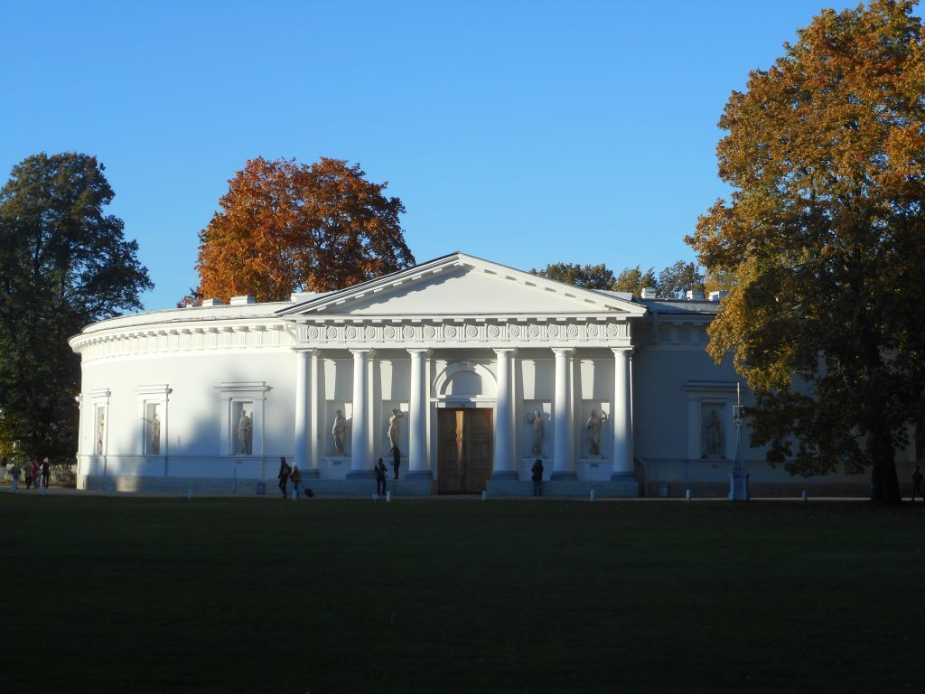 Объемно-пространственное и планировочное решение территории:местоположение границ территории.Объемно-пространственное решение:историческое объемно-пространственное решение полукруглого в плане здания;исторические габариты основного объема, включая воротный проезд, перекрытый прусскими сводами, коробовым сводом с распалубками;исторические форма и габариты крыши (скатная).Конструктивная система здания: исторические конструкции: фундаменты, исторические наружные и внутренние капитальные стены, исторические лестницы и лестничные клетки;исторические отметки плоских междуэтажных перекрытий (для помещений без архитектурно-художественной отделки); исторические плоские перекрытия (для помещений с архитектурно-художественной отделкой).Объемно-планировочное решение:историческое объемно-планировочное решение в габаритах капитальных стен.Архитектурно-художественное решение (композиция) лицевого фасада:Архитектурно-художественное решение в приемах классицизма;материал и характер фасадной поверхности (известняковый цоколь, дощатый руст гладкой штукатурки нижней части стен, гладкая штукатурка верхней части стен);историческое цветовое решение фасадов (жемчужно-серый с выделением архитектурных деталей белым);Южный фасад:элементы архитектурно-декоративной композиции фасада, в том числе:шестиколонный портик с тосканскими колоннами, увенчанный треугольным фронтоном, с триглифно-метопным фризом (триглифы с гуттами), центральной части фасада;тосканские пилястры, находящиеся за колоннами, центральной части фасада; лепные двенадцатилепестковые розетки, вписанные в круг (20 шт.), на метопах фриза шестиколонного портика;входной проем ворот с неглубокой полуциркульной нишей, декорированной волютообразным замковым камнем над ним;прямоугольные ниши для скульптур, с линейными сандриками, фланкированные тосканскими пилястрами, по периметру стен;триглифно-метопный фриз стен, метопы гладкие, триглифы с гутами;венчающий выносной карниз с модульонами (модульоны с мутулами);Северный фасад:ложный шестиколонный портик, с тосканскими колоннами, увенчанный треугольным фронтоном, с триглифно-метопным фризом (триглифы с гуттами), центральной части фасада;лестница портика, со ступенями лещадной плиты;лепные двенадцатилепестковые розетки, вписанные в круг (19 шт.), на метопах фриза шестиколонного портика (аналогичны розеткам южного фасада);ниши (11 шт.) с полуциркульными завершениями и лепной отделкой конхи: композиция из стилизованных пальметт, собранных в виде полурозетки, с меньшей полурозеткой в центре (конха зрительно опирается на волютообразные кронштейны с лепным декором); тосканские пилястры в простенках между нишами стены за колоннами;лепной пояс над нишами с композициями (5 шт.) из жертвенников, гирлянд с лентами и маскаронов, вписанных в круг;триглифно-метопный фриз стен, метопы гладкие, триглифы с гутами;венчающий выносной карниз с модульонами (модульоны с мутулами);пять многолепестковых розеток, находящихся на плоском перекрытии за колоннами; Архитектурное (архитектурно-художественное) решение (композиция) дворового фасада:конфигурация оконных проемов;материал и характер фасадной поверхности (известняковый цоколь, гладкая штукатурка);архитектурно-художественное решение, включая профилированная тяга северной 