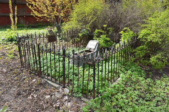 Могила Пешковой-Толиверовой А.Н. (1842-1920), писательницы, 7-й участок, 6-я дорожка1.Объемно-пространственное и архитектурно-художественное решение:историческое местоположение, габариты и конфигурация участка; захоронения в границах территории участка; надгробие в виде раковины внутри ограды; вид материала ограды (металл); характер и содержание надгробной надписи.