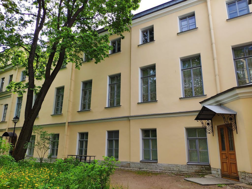 Объемно-пространственноерешение:габариты и конфигурация трехэтажного флигеля (здание обозначено на плане цифрой 5); габариты и конфигурация крыши (односкатная);материал кровли – металл. Конструктивная система:исторические наружные и внутренние кирпичные капитальные стены;сводчатые перекрытия первого этажа, в том числе на подпружных арках;лестница двухмаршевая средистенная, с известняковыми ступенями;ограждение – металлические стержни с деревянными поручнями; Объемно-планировочноерешение:историческое объемно-планировочное решение в габаритах капитальных стен.Архитектурно-художественное решение фасадов:известняковый цоколь;материал и характер отделки фасада – окрашенная штукатурка;исторические оконные проемы – местоположение, габариты, конфигурация (прямоугольная);оконные заполнения – цвет (коричневый), материал (дерево), рисунок расстекловки;дверной проем – местоположение, габариты, конфигурация (прямоугольная), оформление;дверное заполнение – материал (дерево), конструкция (двустворчатая), цвет, оформление (филенки); профилированный карниз;профилированный венчающий карниз. Декоративно-художественная отделка интерьеров:трехчастное помещение, разделенное прямоугольными проемами с декоративными лепными кронштейнами:Аванзал Танцевального зала:оформление плафона – фигурные филенки;оформление падуги – профилированные рамы с фризом растительного орнамента;лепной карниз с гирляндами (фистонами), листьями аканта, поясом гильоша;оформление стен:узкий фриз со стилизованным растительным орнаментом;прямоугольные секции с профилированными архивольтами и лепным растительным орнаментом с пальметтами;вертикальные фигурные филенки в профилированных рамах;прямоугольные филенки с растительным орнаментом и цветочными розеткамифриз с круглыми цветочными розетками;прямоугольные рамы с цветочными розетками, венками;филенки растительного орнамента с рокайльными композициями и розетками по углам;оформление проема – профилированный орнаментированный наличник;дверной проем – исторические местоположение, конфигурация (прямоугольная), габариты, оформление (профилированные орнаментированные наличники);заполнение дверных проемов – конструкция (двустворчатые), материал (красное дерево), цвет, оформление (филенки в обрамлениях под черное дерево с бронзированными профилями);тип покрытия пола – паркет;Танцевальный зал:двусветный зал с рядами ложных зеркальных окон в два яруса по южной стене и в уровне второго света над большими прямоугольными проемами восточной и западной стены, ведущими в помещения аванзала и арьерзала;материал стен и откосов оконных проемов первого яруса – белый искусственный мрамор;подоконники – материал (мрамор);оформление потолка – разноформатные фигурные рамы с лепными композициями растительного орнамента и монохромной росписью геометрического и растительного орнамента;профилированная рама с лепным декором (трельяжная сетка, акцентированная прямоугольными розетками);профилированный орнаментированный карниз;оформление второго яруса:пилястры в обрамлении окон;профилированные филенки с декоративными лепными композициями растительного орнамента;лепные панно с гипсовым декором над оконными проемами;композиции с деревянным резным декором под ложными зеркальными оконн