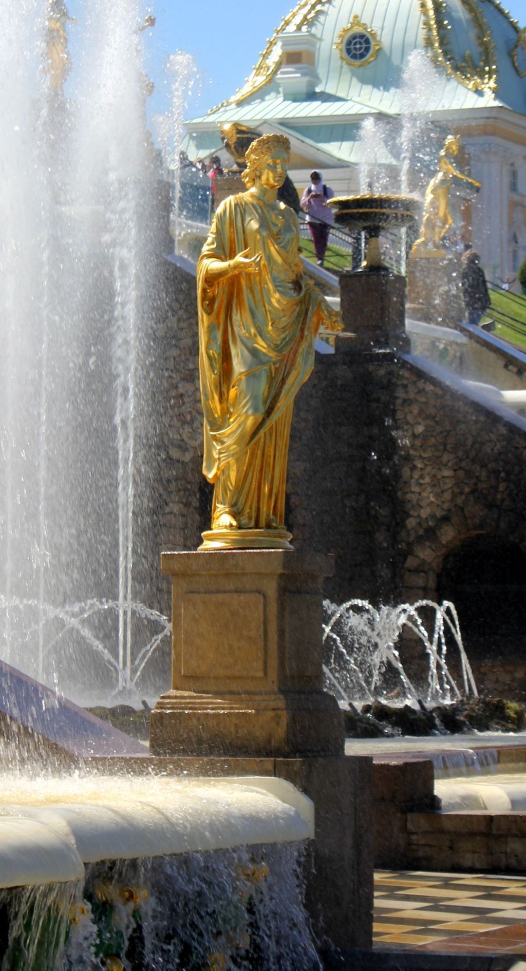 статуя «Флора» (бронза, литье, чеканка, золочение): женская фигура выполнена в полный рост, волосы собраны на затылке, на голове венок из цветов, руки, согнутые в локтях, вытянуты вперед, в левой руке цветы, правая нога согнута в колене и отставлена влево, на левую ногу опирается; одета в длинный хитон, основание круглое, профилированное с надписью: «Флора Капитолийская 1800 года отливал Императорской Академии Художеств мастер В.Екимов в С. Петербурге»;пьедестал (гранит, рубка, шлифовка): четырехгранный, с профилированным основанием и карнизом, с квадратными профилированными филенками по сторонам.