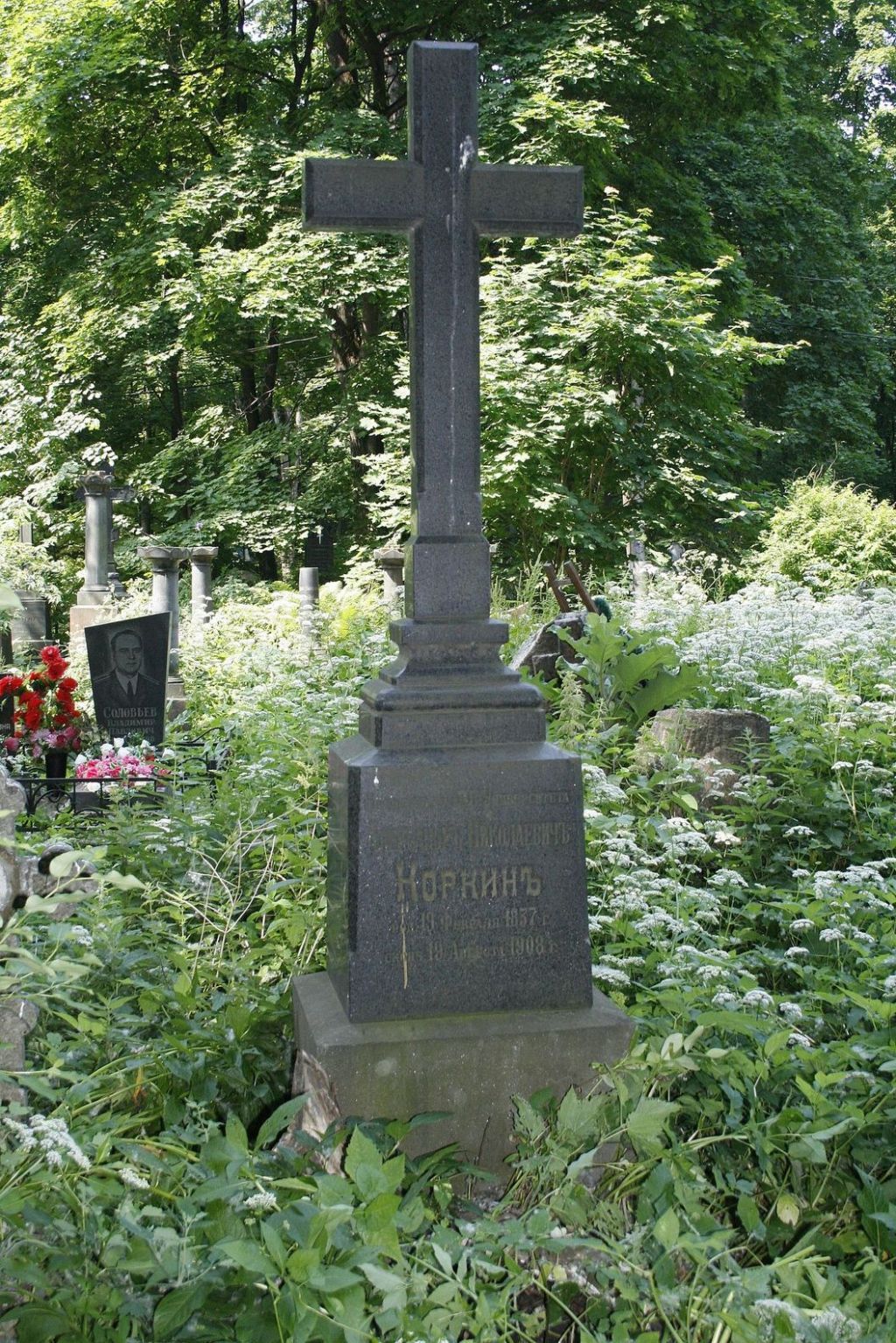 местоположение, габариты и конфигурация участка;захоронения в границах территории участка;художественное решение надгробия (крест с фигурным основанием на прямоугольном пьедестале и основании), вид материала (естественный камень), характер и содержание надгробной надписи.