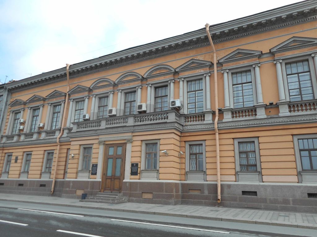 Объемно-пространственное решение:исторические габариты и конфигурация двух лицевых корпусов: по Английской наб., по Галерной ул., пять дворовых корпусов, включая воротный проезд лицевого корпуса по Галерной ул., воротный проезд поперечного дворового корпуса, пространство двух внутренних дворов;исторические габариты и конфигурация крыши (скатная), материал кровли (листовой металл). Конструктивная система:фундаменты;исторические наружные и внутренние капитальные стены – вид материала (кирпич), местоположение;междуэтажные перекрытия – местоположение;своды:крестовые, цилиндрические и коробовые – подвала лицевого корпуса по Английской наб.;цилиндрические с распалубками – воротных проездов; прусский по металлическим балкам – помещения № 1, площадью 12,7 кв.м;крестовые – помещений №№ 8, площадью 21,9 кв.м., 9, площадью 26,4 кв.м.;исторические лестницы – местоположение, габариты, конфигурация, включая:парадная лестница лицевого корпуса по Английской наб. – местоположение (в уровне вестибюля), габариты, конфигурация, тип (междустенная), конструкция, материал (мрамор); восточная лестница лицевого корпуса по Английской наб. – местоположение, габариты, конфигурация, материал ступеней (известняк), материал площадок (мраморная крошка), площадки по сводам, тип (одномаршевая), конструкция (междустенная);западная лестница лицевого корпуса по Английской наб. – местоположение, габариты, конфигурация, тип (двухмаршевая) ограждение – материал (металл), техника исполнения (литье), рисунок (геометрический), материал (мрамор), поручень – материал (дерево), профиль; служебные лестницы восточного и западного дворовых корпусов по Галерной ул. (Л-1 – Л-4) местоположение, габариты, конфигурация, материал ступеней и площадок (известняк), тип (двухмаршевая), конструкция (на косоурах), ограждение – материал (металл), техника исполнения (литье, ковка), рисунок, поручень – материал (дерево), профиль;Объемно-планировочное решение: историческое объемно-планировочное решение в габаритах капитальных стен.Архитектурно-художественное решение фасадов: лицевой фасад по Английской наб.:в приемах эклектики, симметричный, на 11 световых осей, 2-х этажный, на полуподвале; вид материала отделки цоколя – красный гранит;вид материала и характер отделки фасада – линейный руст – в уровне 1-го этажа, гладкая штукатурка – в уровне 2-го этажа;ризалит – местоположение (в уровне 1-го этажа, по 5-й–7-й световым осям), габариты, конфигурация;балкон – местоположение (в завершении ризалита, по 5-й–7-й световым осям, в уровне 2-го этажа), габариты, конфигурация (прямоугольный в плане), ограждение – материал (бетон), форма (фигурные балясины на прямоугольных столбиках);крыльцо – местоположение (по 6-й световой оси), габариты, конфигурация, материал (красный гранит);исторический дверной проем – местоположение, габариты, конфигурация (прямоугольный);оформление дверного проема – антаблемент из пилястр ионического ордера;исторические оконные проемы, включая балконный – местоположение, габариты, конфигурация (прямоугольные);исторический рисунок, цвет* и материал заполнений оконных проемов;(*на основании расчисток и архивных исследований)оформление оконных проемов:заглубленные рамочные наличники, подоконные доски с лежачими филенками на лицевой поверхности – в уровне 1-го этажа;ложные балюстр