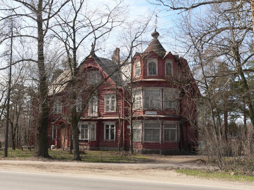 Объемно-пространственное решение: историческое объёмно-пространственное решение и конфигурация в плане здания с развитым мансардным эта¬жом, одноэтажной террасой (пере-строена), эркерами в виде башен и крыльцами в стилистике модерна с использованием мотивов народного зодчества;историческая конфигурация габариты, материал окрытия (металл) многощипцовой крыши основного объема;историческая конфигурация габариты, материал окрытия (лемех) конической, увенчанной луковичной главкой крыши восьмигранной башни с щипцовыми фронтончиками;две дымовые трубы – местоположение, конфигурация, вид материала (кирпич);Конструктивная система здания:исторические наружные и внутренние бревенчатые стены основного объема – материал, местоположение;отметки междуэтажных перекрытий;историческая двухмаршевая лестница – местоположение габариты, конфигурация, материал (дерево), ограждения в виде балясин;Объемно-планировочное решение:историческое объемно-планировочное решение в габаритах наружных и внутренних бревенчатых стен;Архитектурно-художественное решение фасадов:восточный (гласный) фасад: трехчастный. фланкирован эркерами в виде башен: центральная часть выде¬лена двумя рядами расширяющихся книзу выпусков, эркером в 1-ом этаже и увенчана треугольным щипцовым фронтоном с пирамидкой на срезанном коньке;вид материала и характер отделки – равные блоки гранитного цоколя, рубленые «в обло» бревенчатые стены основного объема и эркеров, обшитые в «косую рейку» - стены мансарды;крыльцо (смещено с центральной оси к югу) с резным навершием под дву¬скатным козырьком на фигурных столбах;дверной проем - местоположение габариты, конфигурация (прямоугольный с мелкой расстекловкой в верхней фрамуге);оконные проемы - местоположение габариты, конфигурация (прямоугольные и арочные с мелкой расстекловкой в верхних частях);заполнения оконных проемов - исторический рисунок, вид материала (дерево);обрамления оконных проемов резными наличниками, фартуками, сандриками на кронштейнах;балкон на центральном эркере - место¬положение, габариты, историческое ограждение (декоративная металлическая решетка, состоящая из соединенных хомутами кованых деталей);щипцовый фронтон, украшенный навесными обрамлениями;эркер в виде восьмигранной башни:вид материала и характер отделки – равные блоки гранитного цоколя, рубленые «в обло» бревенчатые стены основного объема, обшитые в «косую рейку» - стены мансарды;оконные проемы - местоположение габариты, конфигурация (во всю ширину граней башни, почти квадратные, в верхнем этаже - арочные, с мелкой расстекловкой в верхних частях);заполнения оконных проемов - исторический рисунок, вид материала (дерево);северный фасад:двухчастный, с версточной стороны фланкирован эркером в виде башен; западная часть выделена двумя рядами расширяющихся книзу выпусков и увенчана треугольным щипцовым фронтоном со срезанным коньком;вид материала и характер отделки – равные блоки гранитного цоколя, рубленые «в обло» бревенчатые стены основного объема и эркеров, обшитые в «косую рейку» - стены мансарды;крыльцо (смещено с центральной оси к югу) с резным навершием под двускатным козырьком на фигурных столбах;дверной проем - местоположение габариты, конфигурация (прямоугольные с мелкой расстекловкой в верхней фрамуге);оконные проем