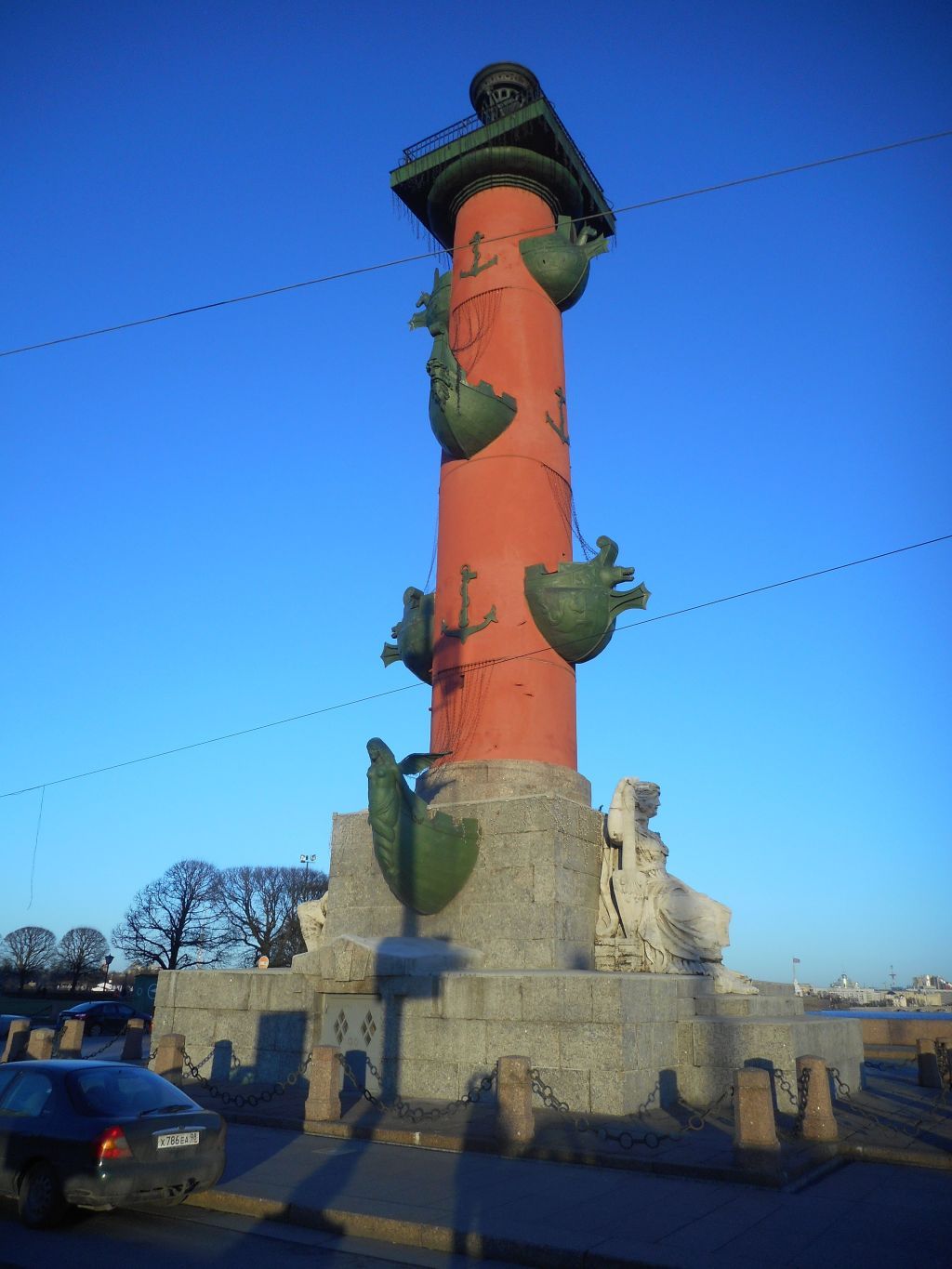 Объемно-пространственное решение:монументальные сооружения в виде колонны, декорированной скульптурными изображениями ростр, установленной на двухъярусном прямоугольном в плане стилобате и увенчанной смотровой площадкой, решенной как капитель колонны (на площадке установлен жертвенник) – первоначальные габариты сооружения, высотные отметки (две колонны идентичны друг другу за исключением монументальной скульптуры стилобатов).Конструктивная система: кирпичные своды стилобатов, наружная облицовка стен стилобатов блоками серого гранита – первоначальные габариты блоков, цвет и текстура камня, характер обработки его поверхности (бучардированная),каменные стены фустов колонн (в нижней части сложены из кирпича, в верхней - из блоков пудостского известняка),винтовые каменные лестницы внутри фустов колонн, ведущие на смотровые площадки, с известняковыми ступенями, закрепленными в кирпичную кладку стен и центрального опорного столба.Объемно-планировочное решение:габариты внутренних винтовых лестниц.Архитектурно-художественное решение фасадов:материал и характер отделки фустов колонн – штукатурка, окраска;декор фустов:попарно размещенные на противоположных сторонах колонн (по шесть на каждой колонне) объемные ростры, декорированные маскаронами либо головами собак – декоративное решение, материал (окрашенная медь), историческая конструкция (на металлических каркасах),попарно размещенные между рострами плоскостные изображения якорей (по шесть на каждой колонне) – декоративное решение, материал (окрашенная медь); декор стилобатов:объемные ростры, декорированные скульптурными изображениями крылатых сирен (по две на каждой колонне, с западной и восточной сторон стилобатов) – декоративное решение, материал (окрашенная медь), историческая конструкция (на металлических каркасах),монументальная аллегорическая скульптура (1805-1810 гг., скульпторы Камберлен Ж., Тибо Ж., каменотес Суханов С.К., пудостский известняк) на стилобатах:северная колонна«Волга» (на северной стороне стилобата) – фигура сидящей женщины в хитоне, на колени наброшен плащ; в левой руке держит рог изобилия, поднятой правой поддерживает кормило;«Днепр» (на южной стороне стилобата) – фигура обнаженного бородатого мужчины, левой рукой опирается на весло (выполнено из меди), правой поддерживает кувшин с изливающейся из него водой; на отставленную в сторону левую ногу наброшена драпировка;южная колонна«Нева» (на южной стороне стилобата) – фигура сидящей женщины в хитоне, на плечи колени наброшен плащ; правой рукой поддерживает весло, левая покоится на якоре; «Волхов» (на северной стороне стилобата) – фигура сидящего обнаженного мужчины; в правой поднятой руке держит весло (выполнено из меди), левую положил на кувшин с изливающейся из него водой; через правое плечо переброшена драпировка;двери, ведущие внутрь стилобатов колонн, по две на каждой колонне – исторический материал (дерево, обшитое металлическими листами, декорированными снаружи геометрически расположенными накладками из металлической полосы), облик (в верхней части устроены ромбообразные окошки, забранные металлическими сетками; ручки выполнены в виде кованых колец);смотровые площадки – исторические габариты и конфигурация, профиль (представляет собой стилизованные эхин и абаку капите
