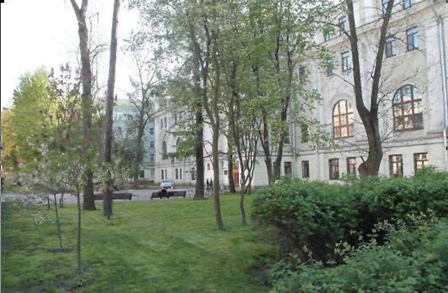 Объемно-пространственное и планировочное решение, рельеф:историческое объемно-планировочное решение участка с палисадником со стороны улицы Маяковского, газонами и рядовыми посадками;рельеф – равнинный, без выраженных перепадов;газоны, насаждения;
