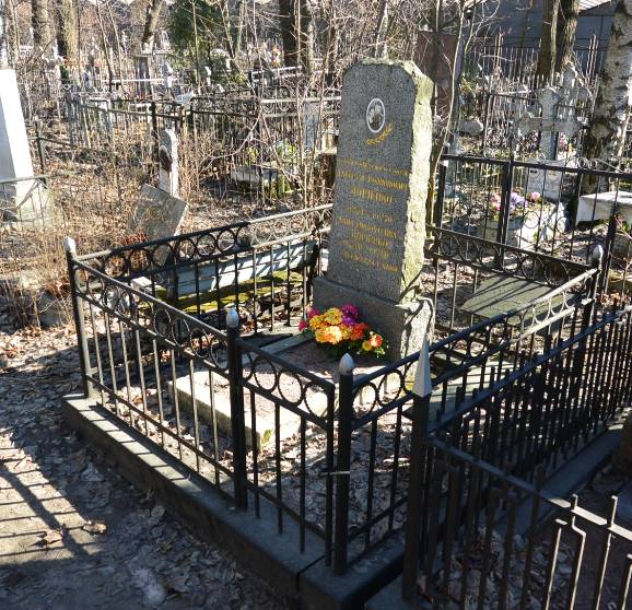 Объемно-пространственное и планировочное решение территории: историческое местоположение и конфигурация семейного участка (№ 41 на схеме); захоронения в границах участка.Объемно-пространственное и архитектурно-художественное решение:объёмно-пространственное решение надгробия (прямоугольная с рваным краем стела из серого гранита на прямоугольном основании с цветником внутри металлической ограды, в верхней части лицевой поверхности стелы расположено парное портретное изображение на фото-эмали); рельефные символы, характер и содержание надгробной надписи.