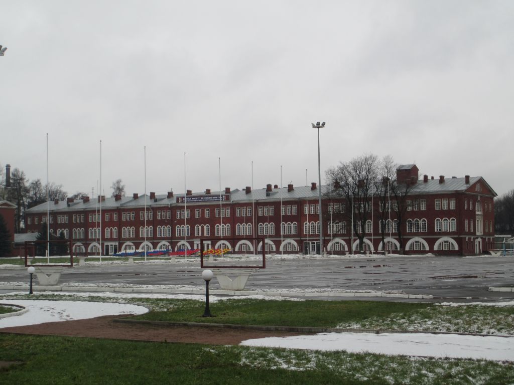 Объемно-пространственное и планировочное решение территории:историческое местоположение и градостроительные характеристики ансамбля, формирующего застройку Т-образного перекрестка, образованного Большим Сампсониевским проспектом и улицей Литовской;местоположение зданий, входящих в состав ансамбля:- офицерский корпус (№6)- корпуса солдатских казарм (два)(№3 и №7)- экзерциргауз с церковью (манеж) (№5)- школа для солдатских детей (№2)- унтер-штаб (№2)- усиленный лазарет (№8)- заразное отделение (№10)- офицерский флигель (№1)- полковая прачечная (№9)- цейхгауз (№4)- сад (№11)I. Офицерский корпус(Большой Сапсониевский пр., д.63, литера Д)Объемно-пространственное решение:историческое местоположение, габариты и конфигурация прямоугольного в плане (включая два боковых и один центральный ризалиты) трехэтажного здания (на плане под № 6);крыша – габариты (включая высотные отметки), конфигурация;дымовые трубы;Конструктивная система здания: капитальные стены (кирпич);исторические отметки перекрытий;винтовая металлическая лестница в помещении за сценой, ведущая на балкон;парадная лестница (центральный ризалит) – распашная, трехмаршевая, тетива маршей подчеркнута профилированными тягами, (облицовка ступеней мрамором - современная);Объемно-планировочное решение:историческое объемно-планировочное решение в габаритах капитальных стен.историческая коридорная система планировки;Архитектурно-художественное решение фасадов:материал отделки цоколя – известняк;материал отделки фасадной поверхности – лицевой кирпич, окрашенная штукатурка;историческое цветовое решение – сочетание лицевого кирпича с выделением гладкой штукатуркой и цветом архитектурно-художественных деталей;оконные и дверные проемы – исторические местоположение, габариты и конфигурация (прямоугольная и прямоугольная с полуциркульным завершением);заполнение оконных проемов – исторические цвет и рисунок расстекловки;обрамление оконных проемов – профилированные наличники и профилированные наличники с замковыми камнями ( в уровне 1-го этажа), исторический цвет, материал и рисунок расстекловки оконных заполнений;горизонтальное членение фасадов:междуэтажные карнизы (между 1 и 2-м этажами);венчающий карниз – местоположение, габариты, конфигурация;ступенчатые аттиковые стенки венчающие боковые и центральную раскреповки фасада;металлодекор главного входа по западному фасаду;* *на момент составления предмета охраны утрачен;Декоративно-художественное оформление интерьеров, предметы декоративно- прикладного искусства: холл:покрытие пола – материал, техника исполнения (терраццо), цветовое решение. рисунок;вестибюль: (1-й этаж центрального ризалита): карниз с иониками (современная бронзировка); зеркало потолка в обрамлении профилированной тяги и пояса модульонов, декорированных стилизованными акантовыми листьями;арочный проем, расположенный на восточной стене, с зеркалом арки декорированным кессонами с розетками расположенными по центру;парадная лестница (центральный ризалит):нижний ярус стен – штукатурный руст с разделкой под мрамор;верхний ярус стен – сдвоенные пилястры (штукатурка с росписью под мрамор) с коринфскими капителями, прямоугольные барельефы (6) с изображением батальных сцен, лепной декор – тяги, фриз в виде розеток в обрамлении пальметт и стилизов