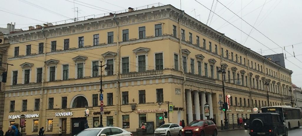 Объемно-пространственное и планировочное решение территории:местоположение и градостроительные характеристики здания, его роль в композиционно-планировочной структуре квартала; габариты внутренних дворов.Объемно-пространственное решение: габариты и конфигурация сложного в плане 4-5 этажного здания на подвале; крыши: конфигурация и габариты, в том числе, высотные отметки коньков и карнизов;исторические межэтажные лестницы: местоположение, конструкция, габариты; ступени - известняк;Объемно-планировочное решение: историческое объемно-планировочное решение в габаритах капитальных стен.Архитектурно-художественное решение фасадов:архитектурно-художественное решение фасадов по проекту архитектора Стасова В.П.; характер отделки фасадов: гранитный цоколь, окрашенная штукатурка (руст в уровне первого этажа);исторические оконные (включая полуциркульные проемы над воротными проездами) и дверные проемы конфигурация, габариты, местоположение;исторические заполнения оконных и дверных проемов - конфигурация, исторический рисунок, материал (дерево) и цвет; единообразие цветового решения;элементы архитектурно-декоративной композиции лицевых фасадов, в том числе:открытые галереи первого этажа, их оформление четырехколонными портиками дорического ордера на высоту 1-2 этажей, увенчанными фризом и карнизов:в уровне первого этажа профилированная междуэтажная тяга, над окнами веерные замковые камни образованные рустом;в уровне третьего этажа над галереей декоративная балюстрада;над частью окон третьего этажа треугольные сандрики на кронштейнах; подоконные тяги в уровне двух верхних этажей;лепные композиции, фланкирующие лоджии;венчающий карниз сильного выноса на кронштейнах, декорированный лепными масками и розетками;на фасадах по ул. Большая Морская и наб. реки Мойки полукруглые окна над воротными проездами;Дворовый фасад:материал и характер отделки фасадов – известняковый цоколь; гладкая окрашенная штукатурка; исторические оконные проемы конфигурация, габариты, местоположение: для окон первого этажа: ширина и верхняя отметка;элементы архитектурно-художественного решения фасада: профилированный венчающий карниз.