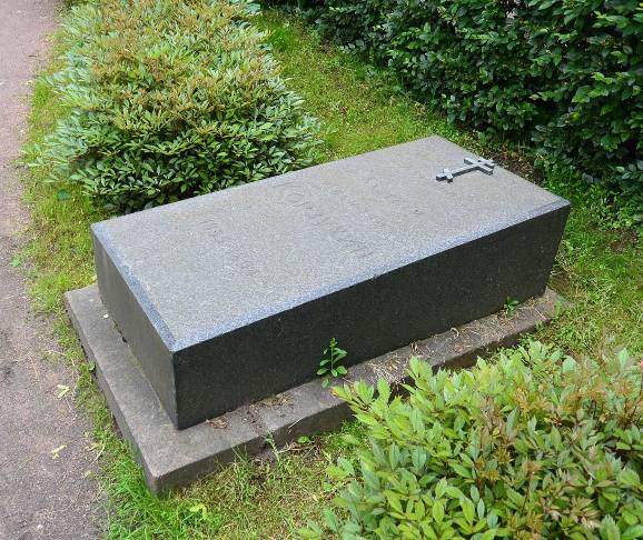 Объемно-пространственное и архитектурно-художественное решение: историческое местоположение захоронения и конфигурация надгробия; историческое надгробие в виде прямоугольной в плане плиты из тёмного гранита на прямоугольном в плане гранитном основании; рельефные символы, характер и содержание надгробных надписей.