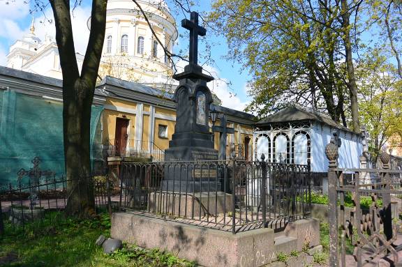 Могила Кояловича М.О. (1828-1891), историка, 4-й участок, 1-я дорожка1.Объемно-пространственное и архитектурно-художественное решение:историческое местоположение, габариты и конфигурация участка (семейное место); захоронения в границах участка; надгробие в виде каплицы из тёмного гранита, увенчанной крестом, на ступенчатом пьедестале из розового гранита, внутри гранитного поребрика с оградой; ограда – вид материала и техника исполнения (металл, ковка), рисунок (исторический); характер и содержание надгробной надписи.