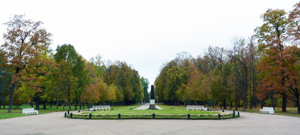 Объемно-пространственное и планировочное решение территории:местоположение захоронения в южной части Александровского парка в середине центральной оси Тройной липовой аллеи (см. схему);захоронения в границах участка.Объемно-пространственное и архитектурно-художественное решение:габариты, конфигурация и решение надгробия в виде прямоугольного в планеобелиска из темного полированного гранита с пирамидальным завершением на прямоугольном в плане пьедестале того же материала и трехступенчатом основании из красного гранита (на лицевой поверхности пьедестала расположена мемориальнная доска из белого мрамора, на которой высечены и тонированы шрифтовые литеры мемориальной надписи);габариты и конфигурация круглого травяного газона, в центре которого установлен обелиск;габариты, конфигурация и трассировка ограждения газона в виде фигурных чугунных столбиков с цепями;характер и содержание мемориальной надписи.