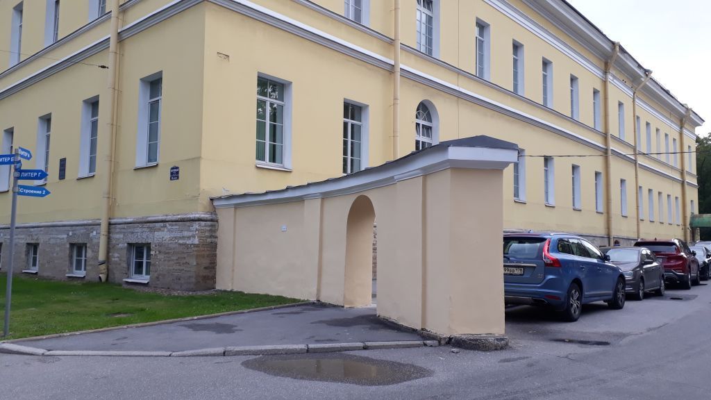 Объемно-пространственное решение и конструктивная система:историческое объемно-пространственное решение полуциркульной кирпичной ограды, расположенной между главным корпусом и боковыми (северным и южным) корпусами;арочный проем с полуциркульным завершением в северной части ограды между главным корпусом и южным корпусом;Архитектурно-художественное решение фасадов:историческое архитектурно-художественное решение;характер отделки: окрашенная штукатурка;оформление ограды: пилястры тосканского ордера, венчающий профилированный карниз;