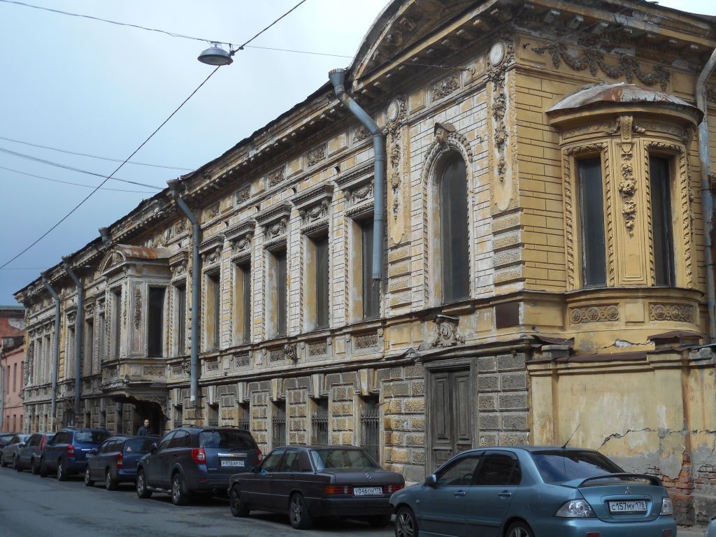 Объемно-пространственное и планировочное решение территории: планировочная структура ансамбля, включающая особняк, расположенный по красной линии Кожевенной линии, сад в восточной угловой части территории и ограду вдоль Кожевенной и Косой линий;исторически сложившиеся визуальные связи между ними, соотношение застроенных и озелененных территорий;сад в ограде (в восточной части участка):старовозрастный древостой; видовой состав насаждений - дуб черешчатый, липа мелколистная в солитерных посадках; местоположение;**историческая планировка утрачена;ограда: местоположение (по красной линии Кожевенной и Косой линий); материал, оформление – кирпичная, оштукатуренная, оформленная лопатками. Объемно-пространственноерешение:габариты и конфигурация двухэтажного здания (лицевого корпуса, дворового флигеля), с прямоугольным в плане эркером и раскреповкой на лицевом фасаде, двумя полукруглыми в плане эркерами на юго-восточном фасаде; с прямоугольным в плане объемом зимнего сада на северо-восточном фасаде;габариты и конфигурация крыш главного здания и флигеля (вальмовые, скатные), включая высоту конька; габариты, конфигурация и высотная отметка фонаря верхнего света в форме четырехлоткового сомкнутого свода над зимним садом; габариты полукуполов над полукруглыми эркерами; материал окрытия (кровельное железо).Конструктивная система: исторические наружные и внутренние капитальные кирпичные стены;своды по металлическим балкам воротного проезда;**в объеме воротного проезда устроена проходная, в проемах – поздние дверные заполнения;сводчатое перекрытие над лестничной клеткой парадной лестницы в виде крестовых сводов;металлические конструкции с остеклением фонаря верхнего света в форме четырехлоткового сомкнутого свода над зимним садом;**на дату издания распоряжения зашит кровельным железом; исторические отметки плоских междуэтажных перекрытий;исторические лестницы Л-1- Л-2 (парадная и служебная):местоположение, габариты, конструкция:парадная лестница - средистенная, одномаршевая, со ступенями белого мрамора; ограждения лестницы – белого с прожилками резного мрамора (мотив «бегущей волны» из акантовых волют);служебная лестница – двухмаршевая, средистенная, с площадками на сводах, со ступенями лещадной плиты;**часть ступеней утрачена, заменена на бетонные.Объемно-планировочноерешение:историческое объемно-планировочное решение в габаритах капитальных стен; габариты помещений с художественной отделкой (п. 6).Архитектурно-художественноерешение фасадов:архитектурно-художественное решение лицевого и садового фасадов в приемах историзма с элементами стиля Людовика XVI;лицевой фасад:материал отделки цоколя – известняк;материал и характер отделки фасадов – гладкая и фактурная окрашенная штукатурка;отделка фасадов квадровым рустом (в уровне 1-го этажа – «под шубу», в уровне 2-го этажа – уплощенным);рустованные лопатки в уровне 2-го этажа;местоположение, габариты, конфигурация проема воротного проезда;**в проеме проезда – позднее дверное заполнение;местоположение, габариты, конфигурация дверного проема парадного входа;дверное заполнение – двустворчатое, дубовое, глухое, филенчатое; каждая створка на три прямоугольные фигарейные филенки с орнаментальной порезкой по периметру, с полочкой, декорированной орнаменталь