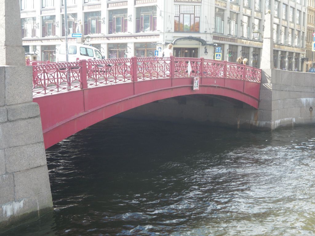 Объемно-пространственное решение:исторические габариты, местоположение и конфигурация чугунного однопролетного арочного моста, включая опоры (береговые устои). Конструктивная система:береговые устои – местоположение, габариты, конфигурация в плане; основания опор – свайное; опоры из бутовой кладки; металлическая конструкция пролета с криволинейным нижним поясом, составленном из отдельных блоков-секций (тюбингов), соединенных болтами.Архитектурно-художественное решение:опоры моста облицованы блоками розового гранита (рапакиви), обработанными в технике бучардирования; исторический рисунок каменной кладки; с литым металлическим ограждением из парапетных столбиков и решеток между ними: столбики – прямоугольные в сечении, горизонтальными тягами решеток разделены на три части;решетки ажурные – горизонтальными тягами разделены на три части; в верхней – фриз из соединенных между собой рифленых колец; в средней – повторяющийся рисунок из четырехугольных остроконечных филенок с квадрифолием внутри, разделенных между собой вертикальными фигурными стойками; в нижней части – фриз из прямоугольных перекрещенных филенок с перехватами (за исключением заполнения остроконечных филенок совпадает с рисунком ограждения набережной на данном участке); исторический колер окраски решеток и металлоконструкций; решетка ограждения фланкирована секциями глухого парапетного ограждения из блоков розового гранита рапакиви (соединенного с ограждением набережной);четыре гранитных обелиска, трапециевидной формы, с профилированными плинтом и поясом, на прямоугольных постаментах, увенчанные золочеными металлическими шарами; к поясам, сбоку к поясам ажурными волютообразными кронштейнами, с розеттами внутри завитков, крепятся четырехгранные фонари матового стекла; нижние крышки с литым орнаментом из розетты и четырех акантовых кронштейнах; над стеклами вставки растительного рисунка; верхние крышки - с шишкой в завершении; детали фонарей и кронштейнов бронзированы;тротуары выполнены из блоков розового овоидального гранита рапакиви, рисунок укладки плит; проезжая часть отделена от тротуаров перилами, состоящими из опорных столбиков и горизонтальных тяг между ними (силовое ограждение), с двух сторон фланкированы секциями глухого парапетного ограждения из блоков розового гранита рапакиви, с трапециевидными тумбами в завершении – местоположение, габариты;табличка (две) с названием мостов на декоративной стойке – местоположение (на парапете ограждения), габариты, конфигурация; стойка – материал (металл), техника исполнения (ковка), рисунок, цвет (черный); табличка – материал (эмаль в два цвета: синий и белый); надписи – размер и первоначальный тип шрифта.