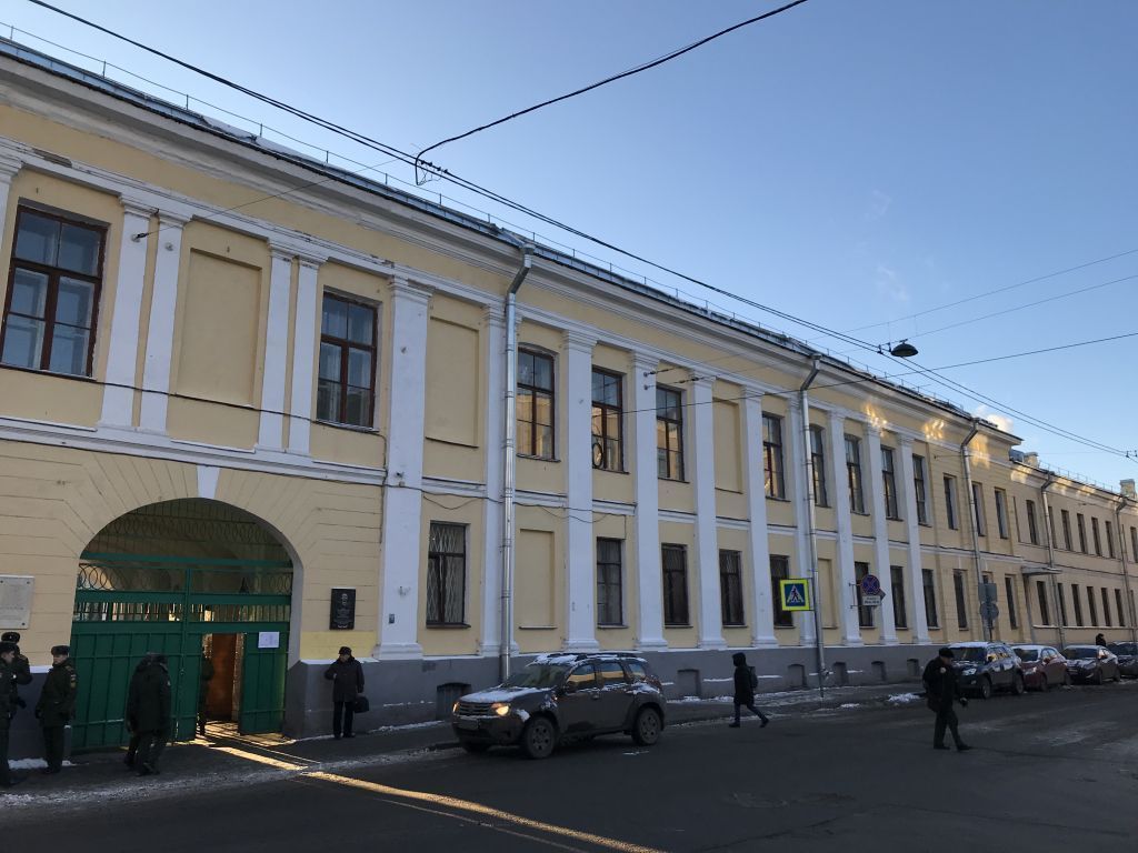 Объемно-пространственное и планировочное решение территории: местоположение ансамбля, включающего:1.Главное здание2.Манеж, 3.Экзерциргауз, градостроительная и средоформирующая роль в застройке улицы Красного Курсанта; обширная прямоугольная в плане территория внутреннего двора главного здания (бывшего плаца) свободного от строений.I. Главное здание1. Объемно-пространственное решение: местоположение, габариты, конфигурация сложного в плане 2-3-х этажного здания; конфигурация, габариты и высотные отметки крыш, кирпичные трубы – габариты, конфигурация. 2. Конструктивная система здания: исторические наружные и внутренние кирпичные капитальные стены; кирпичные своды (воротный проезд и помещения);исторические лестничные клетки и лестницы: габариты, конфигурация в плане, конструкция,материал покрытия (известняк) ступеней; ограждение – материал (металл), рисунок; 3.Объемно-планировочное решение: историческое объемно-планировочное решение помещений,указанных в п. 5 4. Архитектурно-художественное решение фасадов: в стиле классицизма;материал и характер обработки фасадной поверхности – известняковый цоколь, руст, гладкая окрашенная штукатурка; лицевой корпус по ул. Красного Курсанта – с акцентированной центральной частью воротным проездом и пилястрами; оконные проемы – местоположение,конфигурация, габариты; оконные заполнения – рисунок, материал (дерево); пилястры большого ордера и сдвоенные пилястры второго этажа центрального корпуса с воротным проездом лицевого фасада; горизонтальные штукатурные подоконные, междуэтажные тяги;гладкий фриз, венчающий профилированный карниз; заполнение дверного проема – материал оформления (дерево); фрамуга – рисунок расстекловки, материал (дерево). два крыльца со входами в корпуса из воротного проезда; Дворовый фасад лицевого корпуса – акцентирован в центральной части пилястрами большого ордера и воротным проездом; оконные проемы –местоположение, конфигурация, габариты; оконные заполнения – рисунок; боковые корпуса –раскреповки центральных частей фасада со стороны двора; оконные проемы –местоположение, конфигурация, габариты; оконные заполнения – рисунок; выносной карниз на уровне второго этажа с модульонами восточного корпуса; сводчатый арочный проезд в соединительном корпусе с юго-востока (выводит на двор перед церковным корпусом);рустованные пилястры и гладкие сдвоенные пилястры, оформляющие проезд; церковный корпус – здание, соединенное переходом с корпусом главного здания, с симметричным решением лицевого фасада, завершенного фронтонами и увенчанного вальмовой крышей:центральный портик – нижняя часть в виде аркады оконных и дверного проемов, верхняя –колонная тосканского ордера; оконные проемы – местоположение, конфигурация, габариты;оконные заполнения – рисунок, материал (дерево); дверные проемы – рисунок оформления,материал (дерево); антаблемент – архитрав, триглифно-метопный фриз, карниз на модульонах;треугольный фронтон; лепная композиция в тимпане – «Всевидящее око в сиянии»; крыльцо парадного входа; штукатурные профилированные архивольты аркад; металлическое ограждение балкона в портике; оформление оконных проемов в уровне второго этажа в портике – линейные сандрики на кронштейнах, оканчивающиеся шишками пиний; лепные композиции в прямоугольных фи