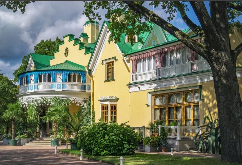 Объемно-пространственное решение:историческое объемно-пространственное решение двухэтажного здания с третьим мансардным этажом, состоящего из нескольких разновеликих объемов, его местоположение, габариты и конфигурация;крыша – местоположение, конфигурация (скатная, включая исторические высотные отметки коньков, карнизов, пятиступенчатые, щипцовые и треугольные фронтоны, слуховые окна стрельчатой формы), габариты, материал (металл), цвет;исторический двухскатный световой фонарь над помещением парадной лестницы – высотные отметки, местоположение, конфигурация, габариты, материал (металл, стекло);исторические высотные отметки оштукатуренных, кирпичных дымовых и вентиляционных труб, местоположение, габариты, конфигурация, оформление (карниз в оголовках труб).Конструктивная система: наружные и внутренние капитальные кирпичные стены, включая исторические перегородки; отметки междуэтажных перекрытий и исторические сводчатые перекрытия:надподвальные своды – полуциркульные;историческая парадная лестница – местоположение, тип (двухмаршевая), конструкция, габариты, материал (металл);ограждение лестницы – материал (металл), рисунок (секции в характере неоготики (в виде готических пятилопастных арок, опирающихся на столбы), деревянные поручни);историческая винтовая лестница – местоположение (помещение «Библиотеки» (1-Н (9)), тип, конфигурация, габариты, материал (металл); ажурные подступеньки с рисунком в виде крестоцветов; поверхность ступенек рифленая; латунные ковродержатели;ограждение винтовой лестницы – материал (металл), рисунок (секции в характере неоготики (со стрельчатыми арками с трехлопастным завершением, между арками трехлопастные розетки), деревянный поручень).Объемно-планировочное решение:историческое объемно-планировочное решение.Архитектурно-художественное решение фасадов:архитектурно-художественное решение фасадов в приемах историзма, со стилизацией мотивов готики;материал и характер отделки цоколя – путиловская плита, завершенная оштукатуренной тягой;материал и характер обработки фасадной поверхности – окрашенная штукатурка;оконные проемы – историческое местоположение, конфигурация (прямоугольные, стрельчатым завершением в уровне мансардного этажа), габариты, включая ромбовидные люкарны;оформление оконных проемов – стилизованными сандриками, подоконными карнизами и гладкими наличниками; историческое заполнение оконных проемов – рисунок расстекловки (двойные рамы, двустворчатые, каждая створка в восемь стекол, фрамуга в шесть стекол; рамы фрамуги со стрельчатым завершением), материал (дерево); эркеры (Южный, Северный и Западный фасады) в уровне 1-го этажа трехгранные на чугунном основании – местоположение, конфигурация, габариты;оформление эркеров – деревянный зубчатый поясок с выступающим карнизом с металлическим окрытием и фризом с листьями болотника;заполнение эркеров – рисунок расстекловки (двойные рамы, двустворчатые, каждая створка в восемь стекол, фрамуга в шесть стекол; рамы фрамуги со стрельчатым завершением) и материал (дерево); Главный фасад (южный):центральная часть фасада выделена пятиступенчатым щипцовым фронтоном с люкарной, полукружным гранитным крыльцом со стилизованным чугунным портиком в характере неоготики, из стрельчатой пятипролетной аркады, разделе