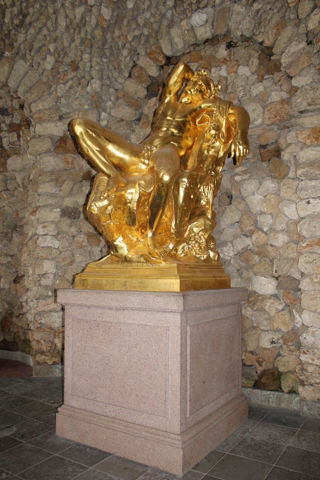 статуя «Фавн Берберини» на плинте (медь, позолота), установлена в Нижнем гроте Большого каскада;пьедестал* гранитный прямоугольной формы, с прямым карнизом и профилированной базой, с выпуклыми квадратными филенками по граням; * пьедестал воссоздан в 1990-х гг.;