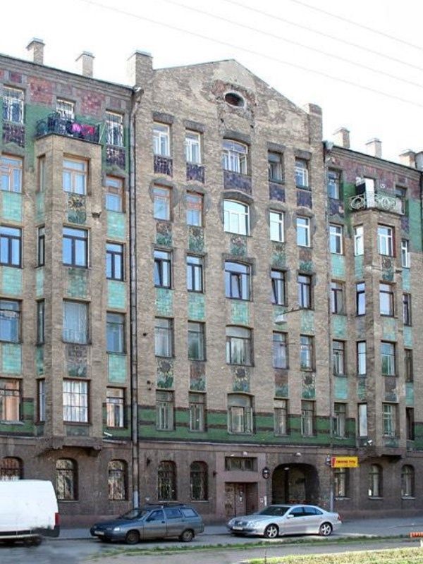 Объёмно-пространственное решение:габариты и конфигурацияпрямоугольного здания, в плане образующего периметральную застройку с двумя внутренними дворами, состоящего из 6-ти этажного на подвале лицевого корпуса с двумя эркерами по лицевому фасаду в уровне 2-5-го этажей и треугольным щипцом в завершении, и примыкающих к нему двух северных, двух южныхи поперечного дворового флигеля: включая четыре скругленные в плане ризалита дворовых фасадов северных и южных флигелей и три воротные проезда;конфигурация (скатная) и габариты крыш, включая высотную отметку конька и дымовые трубы;материал окрытия (кровельное железо);Конструктивнаясистема здания:Исторические конструкции:наружные и внутренние капитальные стены, их местоположение, материал (кирпич);исторические отметки междуэтажных перекрытий;парадная лестница Л1 – местоположение, габариты, конструкция, тип (двухмаршевая, марши по косоурам);ступени и площадки лещадной плиты; профиль ступеней с валиком;ограждение маршей черного металла: материал, техника исполнения (прокат, ковка, слесарная сборка); рисунок (вертикальные стержни прямоугольного сечения с накладными концентрическими кругами в характере стиля «модерн»);поручни – деревянные профилированные;лестницы дворовых флигелей Л2-Л6 – местоположение, габариты, конструкция, тип (двухмаршевые, с широкими межэтажными площадками, марши по косоурам);ступени и лестничные площадки лещадной плиты; профиль ступеней с валиком;лестничные площадки на прусских сводах по металлическим балкам;ограждение маршей черного металла: материал, техника исполнения (прокат, слесарная сборка); рисунок (вертикальные стержни прямоугольного сечения с навершиями в виде шаров);Объёмно- планировочное решение:историческое объемно-планировочное решение помещений с архитектурно- художественной отделкой, указанных в пункте 5;Архитектурно-художественное решение (композиция) фасадов:архитектурно-художественное решение лицевого фасада в стиле модерн, выполненное по проекту архитектора М.Ф. Еремеева, 1910 г., включающее элементы декоративно- художественной отделки:материал и характер отделки лицевого фасада:облицовочный кирпич«кабанчик» в уровне 2-6-го этажей;орнаментальные вставки из глазурованной плитки в уровне 2-6-го этажей, цвет (изумрудный, пурпурный, коричневый, бирюзовый);межэтажный карниз в уровне между первым и вторым этажами;обработка фасада в уровне 1-го этажа мелкоформатным полигональным гранитом («щепа»);характер отделки фасада в уровне первого этажа – квадровый руст;материал и характер отделки цоколя – красный гладко тесаный гранит;входной проем – местоположение, габариты, конфигурация;красный гладко тесаный гранит в оформлении парадного входа;заполнение дверного проема– деревянное, трехстворчатое, каждая створка полусветлая (?); рисунок в характере стиля«модерн»;резные деревянные детали – рисунок с элементами растительного и геометрического характера;деревянное заполнение с расстекловкой фрамуги над дверным проемом;оконные проемы – местоположение, габариты (отметка высоты и габариты ширины в уровне оконных проемов 1-го этажа; конфигурация, включая оконные проемы с лучковыми перемычками по6-й световой оси фасада, оконные проемы с коробовыми перемычками в уровне 1-го этажа, щелевидные оконные проемы эркеров, термальное окно в 