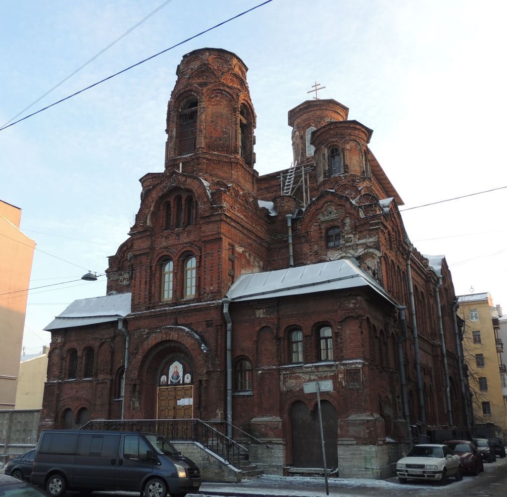 Объемно-пространственное решение:объемно-пространственное решение и габариты здания церкви на подвалах, прямоугольного в плане, с колокольней над главным входом и двумя пониженными двухэтажными лестничными объемами по сторонам входа на западном фасаде и апсидой на восточном фасаде, завершенное крышей сложной конфигурации с переломами, куполами* и шатром колокольни* (*утрачены); конфигурация, габариты, исторические высотные отметки крыши, куполов и шатра.Конструктивная система здания:наружные и внутренние капитальные стены – материал (кирпич), историческое местоположение; бутовый ленточный фундамент; перекрытия – историческое местоположение; своды (крестовые, цилиндрические, коробовые, купольные); колонны, пилоны; исторические лестницы – тип, местоположение, конструкции, материалы;Объемно-планировочное решение:объемно-планировочное решение в габаритах капитальных стен;Архитектурно-художественное решение фасадов: архитектурно-художественное решение фасадов в приемах неорусского стиля; материал и характер фасадной поверхности - красный кирпич, штукатурка, известняковые вставки, изразцы* и майолика* (*утрачены); историческое цветовое решение фасада (сочетание цвета фасадного кирпича, изразца, майолики, штукатурки и известняка); цоколь, облицованный известняком; оконные и дверные проемы - габариты, конфигурация (прямоугольные, щелевидные, с полуциркульными, лучковыми, трехлопастными завершениями, дверные и оконные проемы в виде двух полуциркульных арок с деревянной гирькой), местоположение; исторический рисунок, цвет (по результатам расчисток и архивным материалам) и материал (металл, дерево) оконных заполнений (в том числе с витражным остеклением); исторический рисунок, цвет (по результатам расчисток и архивным материалам) и материал (дерево) дверных заполнений (в том числе филенчатые, с глухими фрамугами, заполнение главного входа с фигурным переплетом полуциркульной фрамуги в виде трехчастного киота с центральной частью в форме многолопастного кокошника); оформление центрального входа западного фасада – дверной проем с полуциркульным завершением в фигурном архивольте, фланкированный парными полуколоннами; апсида, пятигранная в 1-м и полуциркульная во 2-м этажах с нишей-киотом с полуциркульным завершением (раннее в нише располагалась икона), над нишей подковообразный кокошник; завершение апсиды купольное с основанием восьмигранного барабана (утрачен); горизонтальные членения фасадов профилированными тягами, карнизами, фризами с поясом «поребрик»; вертикальные членения фасадов лопатками (в том числе с ширинками), полуколоннами; архитектурный декор: ряды кокошников различного размера и конфигурации, аркатурно-колончатые пояса, лепные медальоны с плетеным орнаментом и вписанными греческими крестами, сдвоенные колонки, «дыньки» с перехватами, орнаментированные капители, пятилопастные арки в оформлении щипцов; архивольты, наличники, сандрики; металлодекор – оконные решетки с растительным орнаментом, завитками; фриз изразцовый (утрачен), венчающий профилированный карниз.Декоративно-художественная оформление интерьеров, предметы декоративно-прикладного искусства: перекрытия подвальных помещений крестовыми, цилиндрическими и коробовыми сводами с распалубками; Нижний храм: центральная часть с крест