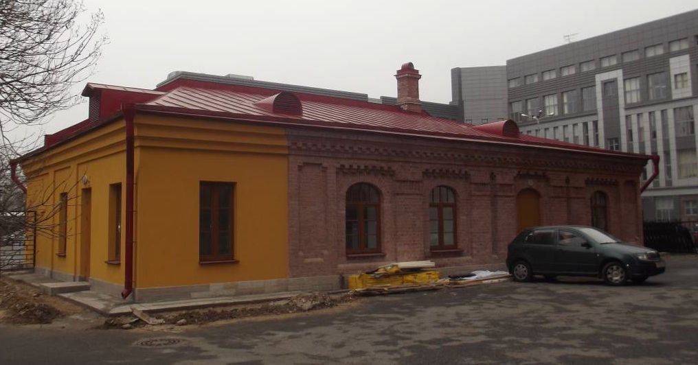II. Дом для переодевания невестОбъемно-пространственное решение:историческое объемно-пространственное решение одноэтажного прямоугольного в плане здания (без подвала) в габаритах начала XX века; крыша - тип (вальмовая, стропильная), материал кровли (металл);печные трубы.Конструктивная система:исторические наружные и внутренние кирпичные капитальные стены исторической части здания.Объемно-планировочноерешение:историческое объемно-планировочное решение в габаритах капитальных стен.Архитектурно-художественное решение фасадов:историческое архитектурное решение северного и западного фасадов в «кирпичном стиле» - материал и характер отделки фасада (лицевой кирпич);известняковый цоколь;исторические оконные и дверные проемы - местоположение, габариты, конфигурация (перемычки бочарной формы), цвет и рисунок расстекловки;характерные для «кирпичного стиля» архитектурные детали: лопатки, сухарики, ребристые фризы, горизонтальные профилированные тяги, венчающий профилированный карниз, - местоположение, конфигурация, габариты.