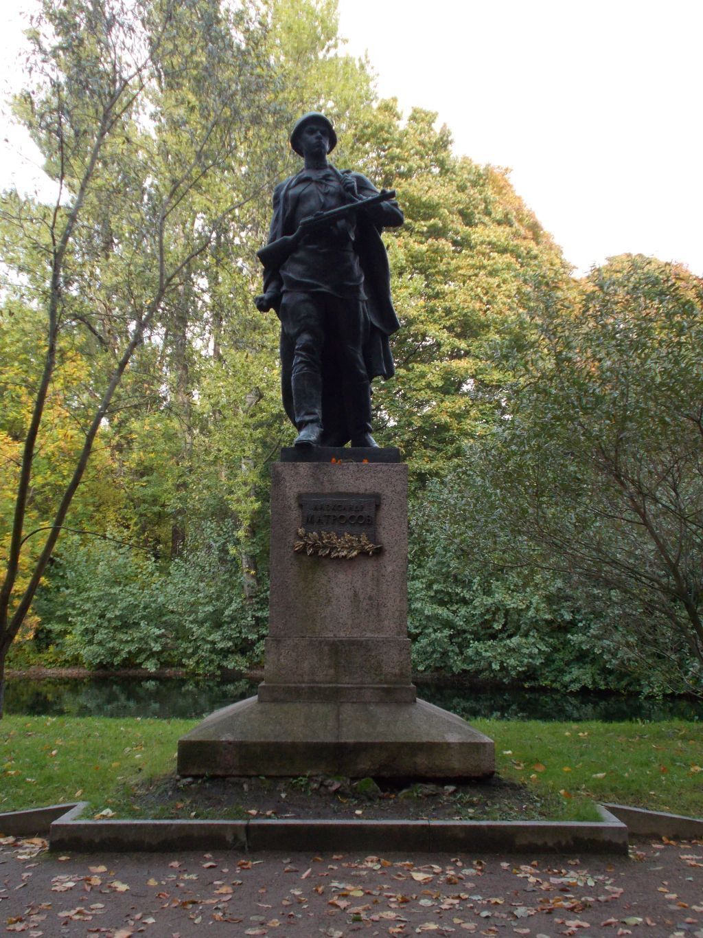 Объемно-пространственное решение: объемно-пространственное решение и габариты скульптуры и постамента. Архитектурно-художественное и пластическое решение: постамент ступенчатый, квадратный в сечении, из нескольких гранитных блоков, с широким стилобатом со скошенной верхней частью;скульптура А.М. Матросова в рост с автоматом в руках на гладком плинте (скульптор Эйдлин Л.Ю.); доска с надписью; материал и техника исполнения скульптуры и памятной доски – литье, бронза; материал постамента – розовый гранит.