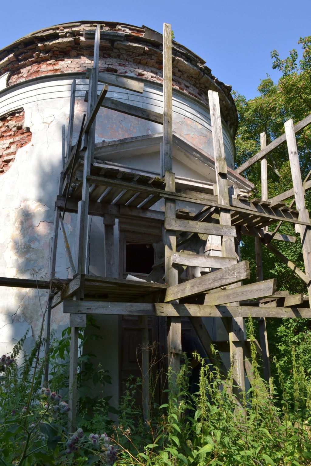 Объемно-пространственное решение:павильон круглый в плане, завершенный куполом;габариты и конфигурация павильона в плане;купол – габариты, конфигурация (полусферический), высотные отметки; материал окрытия купола – металл.Конструктивная система здания:наружные и внутренние кирпичные капитальные стены; конструкции купола с круглым окном для телескопа;исторические отметки междуэтажных перекрытий с отверстием для телескопа;лестница полувинтовая со ступенями с покрытием деревом, деревянными баллюстрадными ограждениями, ее конструкции, габариты, местоположение, рисунок и материал ограждения. Объемно-планировочное решение:историческое объемно-планировочное решение в габаритах капитальных стен.Архитектурно-художественное решение фасадов:архитектурно-художественное решение в приемах советской неоклассики;материал и характер отделки фасадной поверхности – гладкая штукатурка; цоколь, облицованный известняком;дверной проем - габариты, конфигурация (прямоугольный), местоположение;оконные проемы по окружности основания купола - габариты, конфигурация (прямоугольные), местоположение;дверное заполнение деревянное одностворчатое филенчатое;входной портал, завершенный треугольным фронтоном с профилированным карнизом, с двумя фланкирующими пилястрами;венчающий профилированный карниз, гладкий фриз.Декоративно-художественная отделка интерьеров:оформление дверного проема – стилизованный портал с треугольным фронтоном с поясами иоников, гладкими пилястрами;оформление потолка – профилированный карниз.