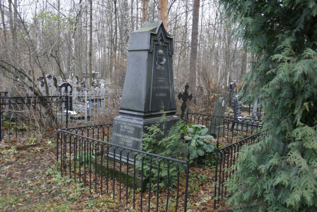 Объемно-пространственное и планировочное решение территории: историческое местоположение и конфигурация семейного участка (№ 24 на схеме); захоронения в границах участка.Объемно-пространственное и архитектурно-художественное решение:исторические местоположение, габариты и конфигурация надгробия (семейное место); объемно-пространственное и архитектурно-художественное решение (фигурная профилированная стела на профилированном постаменте из полированного тёмно-серого гранита, в верхней части лицевой поверхности стелы установлен рельефный портретный медальон из бронзы, к постаменту прилегает цветник, семейное захоронение находится внутри металлической ограды); рельефные символы, характер и содержание надгробной надписи.