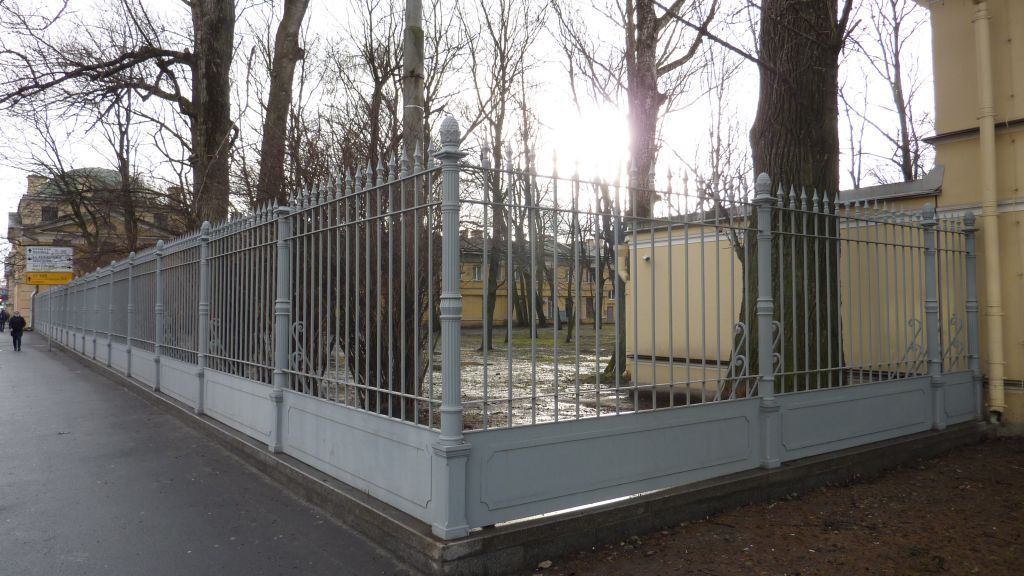 Конструктивная система:историческое местоположение, конфигурация, габариты;материал и цвет – глухая металлическая нижняя часть и верхняя часть в виде вертикально расположенных пик (материал, техника исполнения, конфигурация).