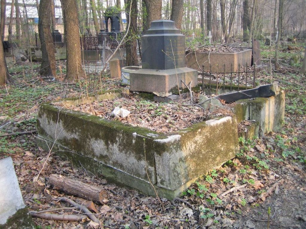 местоположение, габариты и конфигурация участка;захоронения в границах территории участка;художественное решение надгробия (крест /утрачен/ на прямоугольном пьедестале внутри семейного захоронения), вид материала (естественный камень), историческое ограждение – вид материала (металл), характер и содержание надгробной надписи.