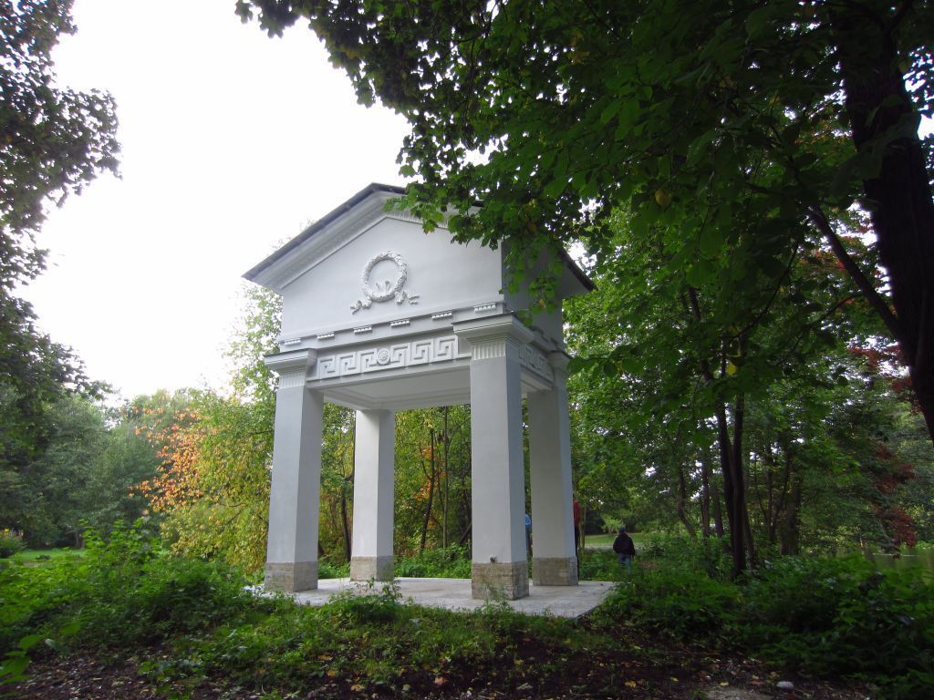 Объемно-пространственноерешение:габариты и конфигурация прямоугольного в плане павильона;крыша - конфигурация и габариты крыши (двускатная);Конструктив-ная система здания: исторические конструкции: стоечно-балочная конструкция;Объемно-планировочноерешение:историческое объемно-планировочное решение в габаритах пилонов;Архитектурно-художествен-ное решение фасада:архитектурно-художественное решение в стиле классицизма;прямоугольный стилобат основания из известняковых плит:четыре пилона с капителями, абаки коротых сильно вынесены;фриз, оформленный стилизованным орнаментальным поясом «меандр»;полочка с гуттами;лепные венки с лентами;материал отделки – штукатурка;профилированный карниз с пальметтами.