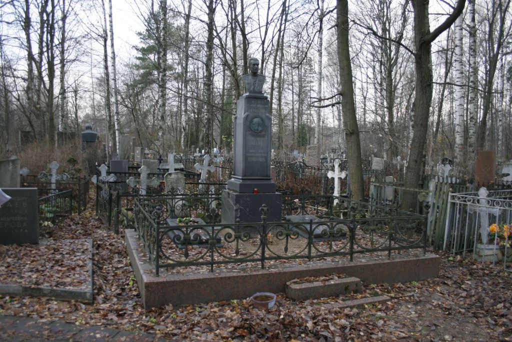 Объемно-пространственное и планировочное решение территории: историческое местоположение и конфигурация семейного участка (№ 27 на схеме); захоронения в границах участка.Объемно-пространственное и архитектурно-художественное решение:исторические местоположение, габариты и конфигурация надгробия (семейное место); авторское художественное решение надгробия (портретный скульптурный бюст из серого гранита на прямоугольном профилированном пьедестале из габбро на профилированном основании, внутри ограды); ограда – вид материала (металл), рисунок (исторический), техника исполнения (ковка); рельефы, характер и содержание надгробных надписей.