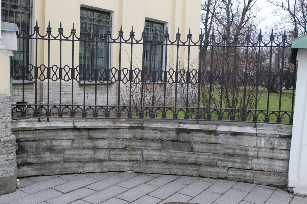 Объемно-пространственное и архитектурно-художественное решение:историческое местоположение ограды Тихвинской церкви в западной части ограды Тихвинского кладбища; габариты и конфигурация в плане металлической ограды на профилированном известняковом цоколе (в северной части ограды расположены двустворчатые ворота), с кирпичными опорными столбами, являющимися частью ограды Тихвинского кладбища; рисунок металлической кованой ограды и ворот (вертикальные прутья квадратного сечения с аркатурными поясами и перехватами в верхней и нижней частях, с фигурным фризом в средней части); оформление полупилонов ограды у стен северо-западной пристройки Тихвинской церкви (входной вестибюль) профилированными штукатурными карнизами.