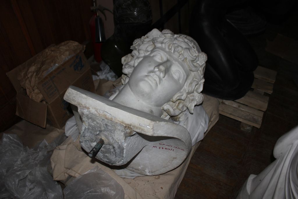 «Бюст \"Антиной\"», (копия с античного оригинала II в. до н.э.), XIX в. (постамент), куртина у северного фасада Китайского дворца. Мрамор. Погрудный бюст греческого юноши.