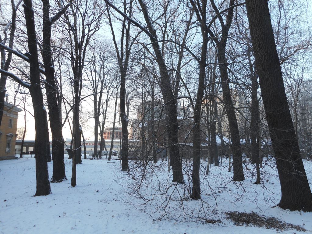 1. Объемно-пространственное и планировочное решение территории: местоположение площадки по центральной оси северо-восточного фасада; рядовая посадка деревьев вдоль Выборгской набережной; состав пород деревьев - клен, дуб.